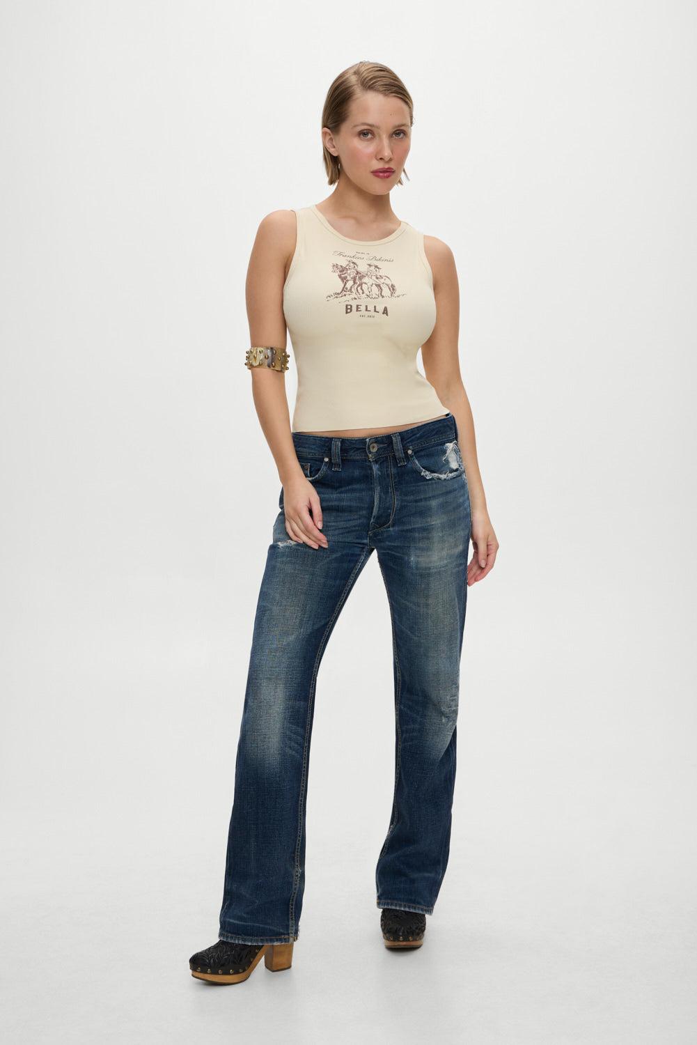 The Reno cotton tank is a timeless staple. Effortlessly wearable and endlessly versatile, this tank is perfect for layering or styling solo. Exclusively from the Bella Hadid x Frankies Bikinis collaboration. Details Classic tank top fit Custom illustration of Francesca and Bella on horseback Soft cotton fabric Fabric 95% Cotton + 5% Spandex Model Size & Fit This style runs true to size Laura is wearing a size Small Height 5' 7" (170.18cm) Bust 34.4" (86.5), Waist 23.5” (59.68cm), Hips 35” (88.9cm)