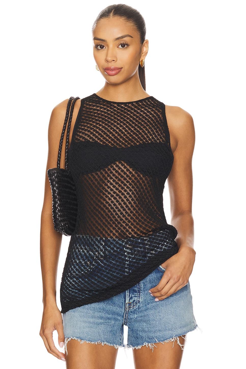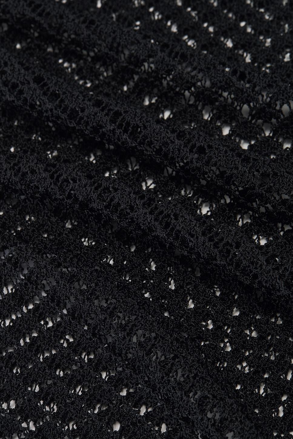 100% viscose. Dry clean only. Open crochet fabric. Midweight crochet fabric. Garment is intentionally sheer, undergarments will show through.Please note undergarment not included. Made in China. Revolve Style No. EAVR-WS47. Manufacturer Style No. EAS10053 U25.