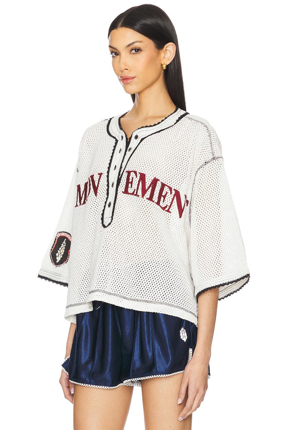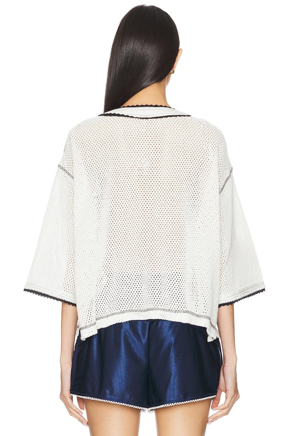 100% cotton. Hand wash cold. Front button closures. Front embroidered graphic and graphic logo applique at sleeve. Lace trim. Midweight open knit crochet fabric. Garment is intentionally sheer, undergarments will show through.Please note undergarment not included. Made in India. Revolve Style No. FREE-WS5135. Manufacturer Style No. OB2179506 1006.