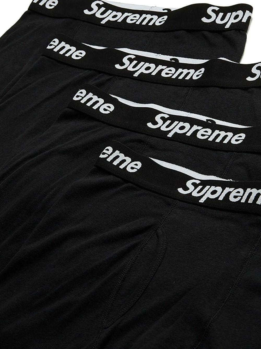 Supreme x Hanes Tagless boxer briefs (set of four) | Black | black | cotton | stretch-design | logo waistband | set of four | Stadium Goods can only accept returns of underwear in its original sealed and branded packaging unless the item is damaged or faulty upon delivery to you. | Cotton | Briefs & Boxers | Underwear & Socks | Men