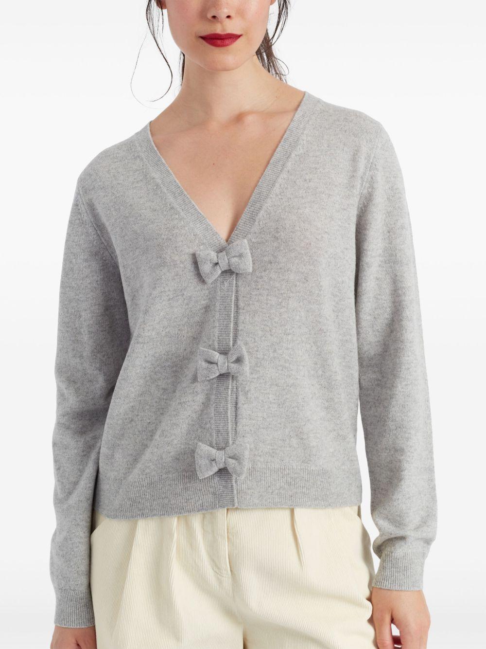 Chinti & Parker x Hello Kitty bow-detail cardigan | Grey | light grey | front button fastening | Wool/Cashmere | Cardigans | Knits | Clothing | Women