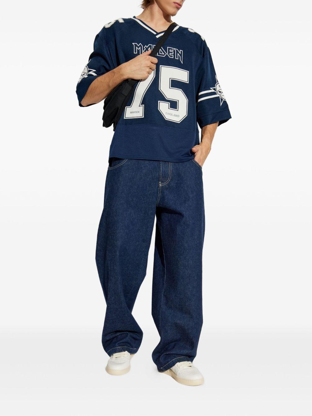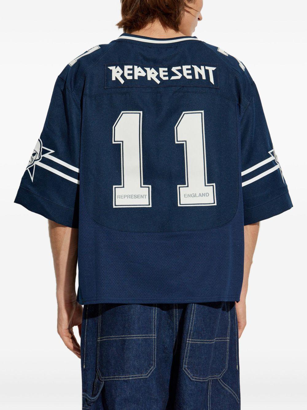 Represent x Iron Maiden Anniversary number 75 star-embellished jersey | Blue | mid blue | number 75 | star embellishment | short sleeves | V-neck | mesh panelling | Polyester | T-Shirts | T-Shirts & Vests | Clothing | Men
