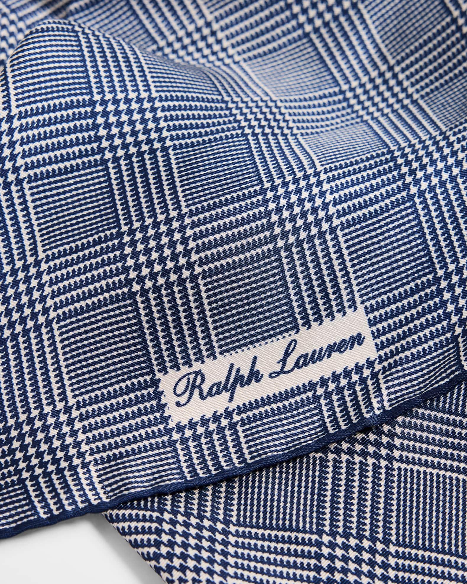 Ralph Lauren Purple Label x Neiman Marcus neckerchief in Glen plaid Approx. 40L x 7.0W Silk Dry clean Made in Italy