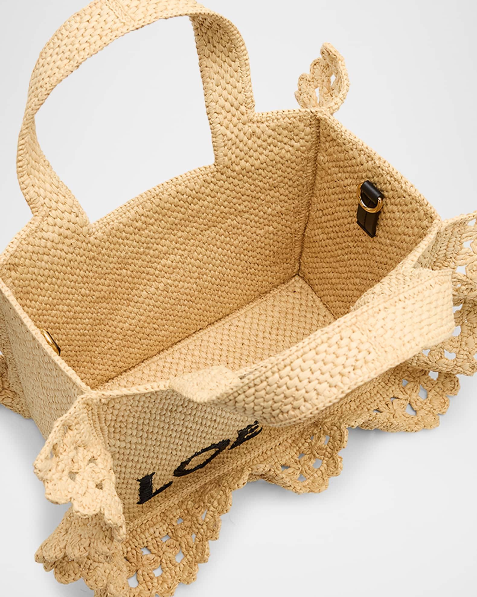 x Paula’s Ibiza Small Ruffled Tote Bag in Raffia