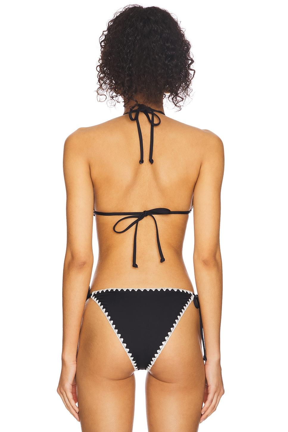 80% nylon, 20% spandex. Hand wash cold. Halterneck and back tie closures. Contrast crochet trim. Unpadded unwired cups. Midweight swimwear fabric. Item not sold as set. Made in China. Revolve Style No. LSPA-WX2113. Manufacturer Style No. LSZHT25.