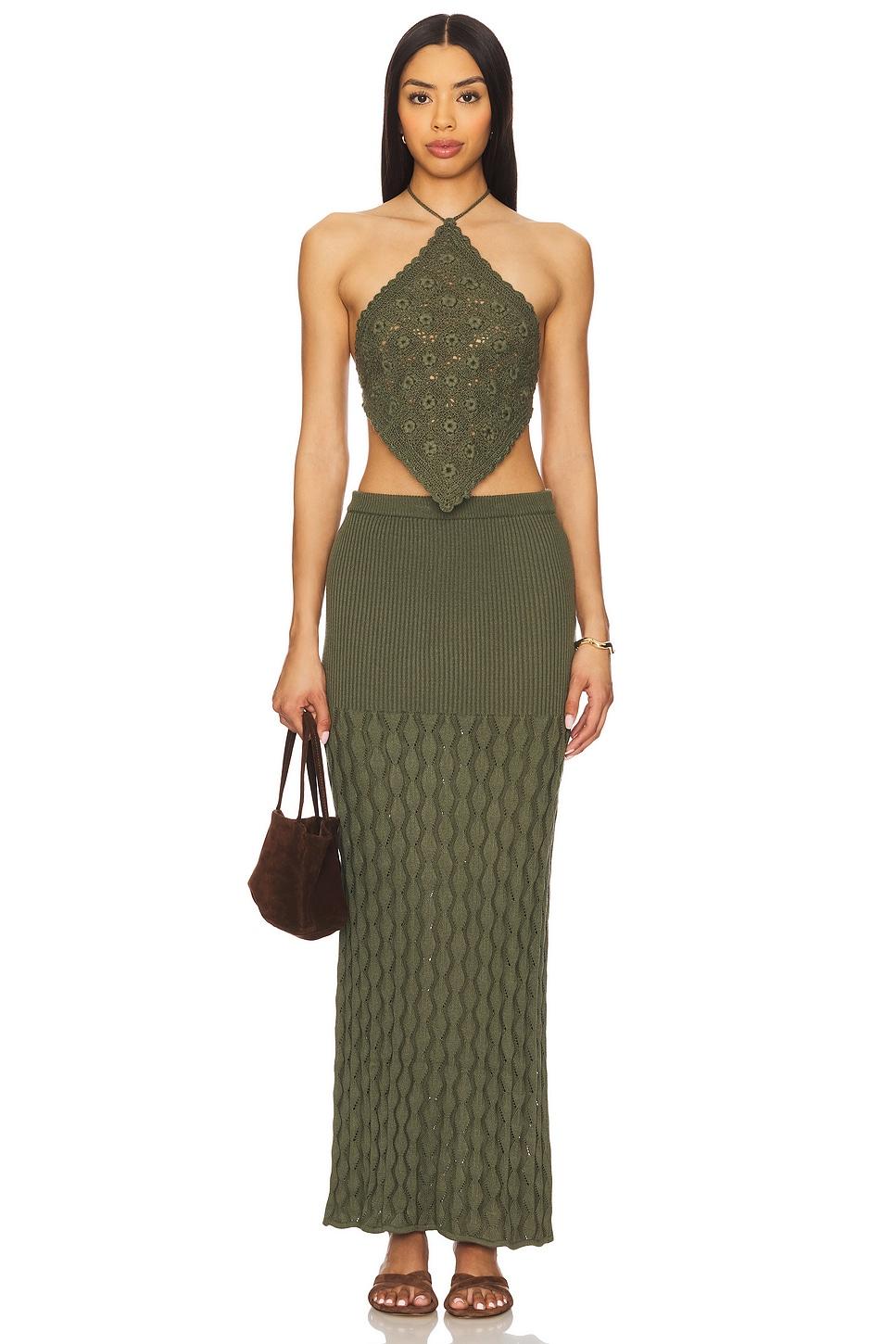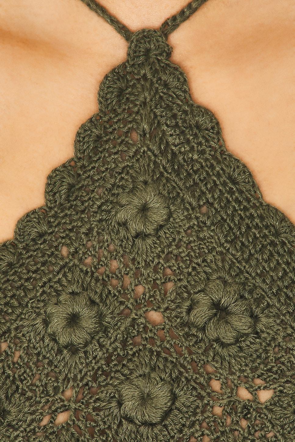 Agua Bendita x REVOLVE50% acrylic, 50% modal. Machine wash. Self-tie halterneck and back strap. Crochet knit fabric. Item not sold as set. Made in Colombia. Revolve Style No. AGUA-WS109. Manufacturer Style No. FLOWER.