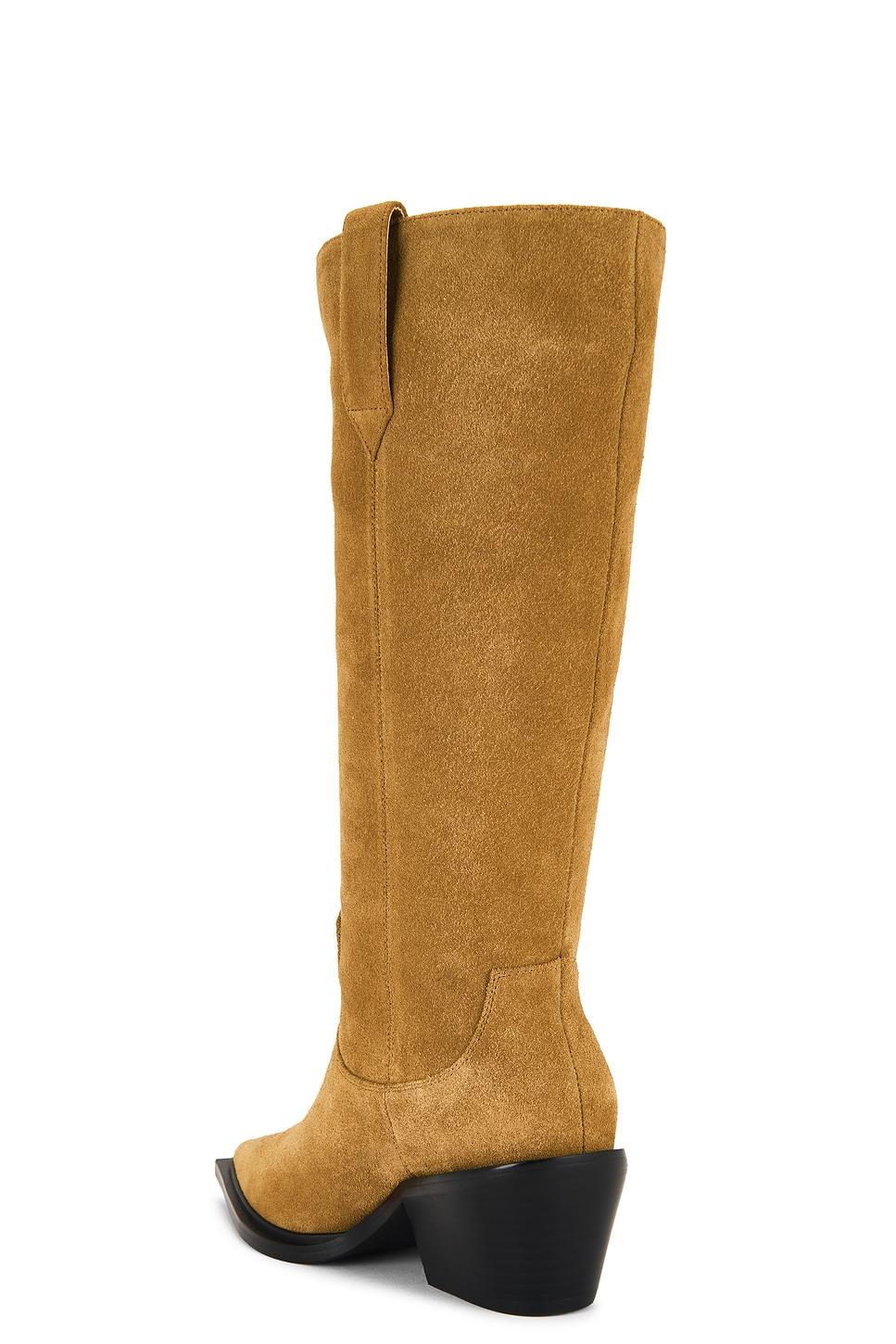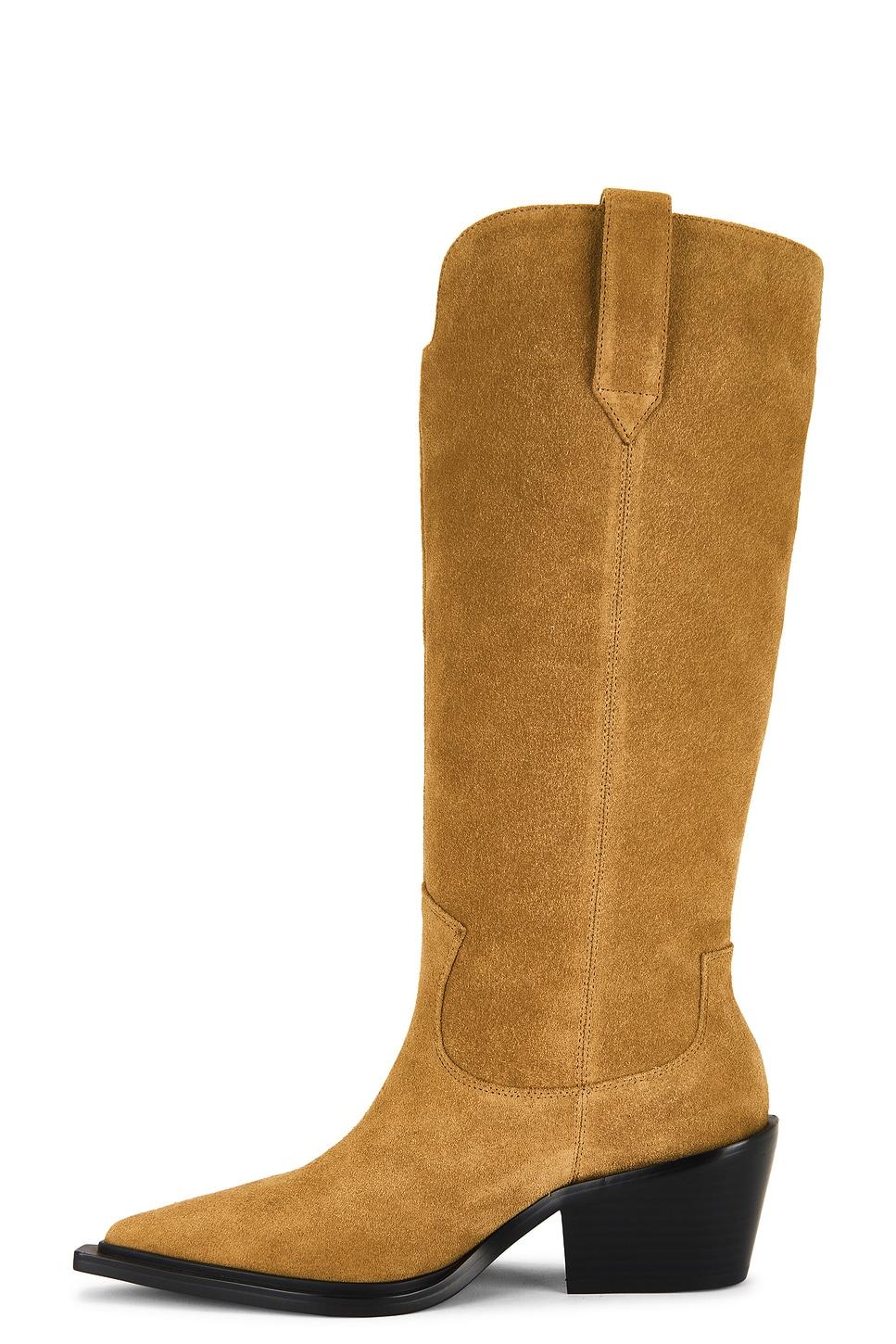 Suede upper with rubber sole. Pull-on styling. Faux leather footbed with textile lining. Dual side pull-tabs. Pointed toe with wooden block heel. Approx 65mm/ 2.5 inch heelApprox 330mm/ 13 inch shaftOpening measures approx 12.56" in circumference. Made in China. Revolve Style No. NEDV-WZ22. Manufacturer Style No. NVS-013-HO.