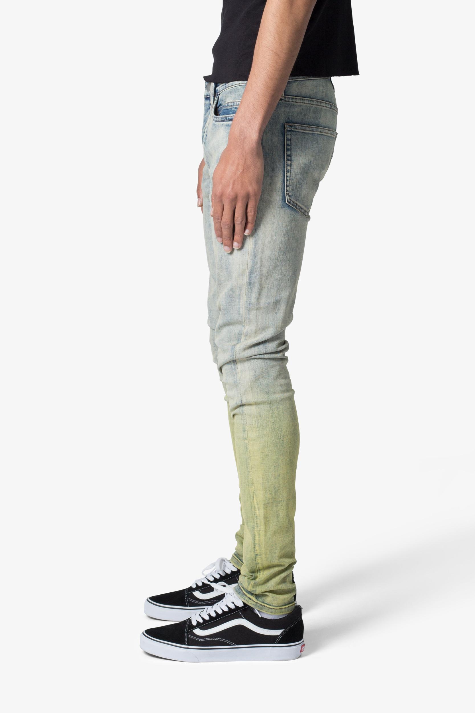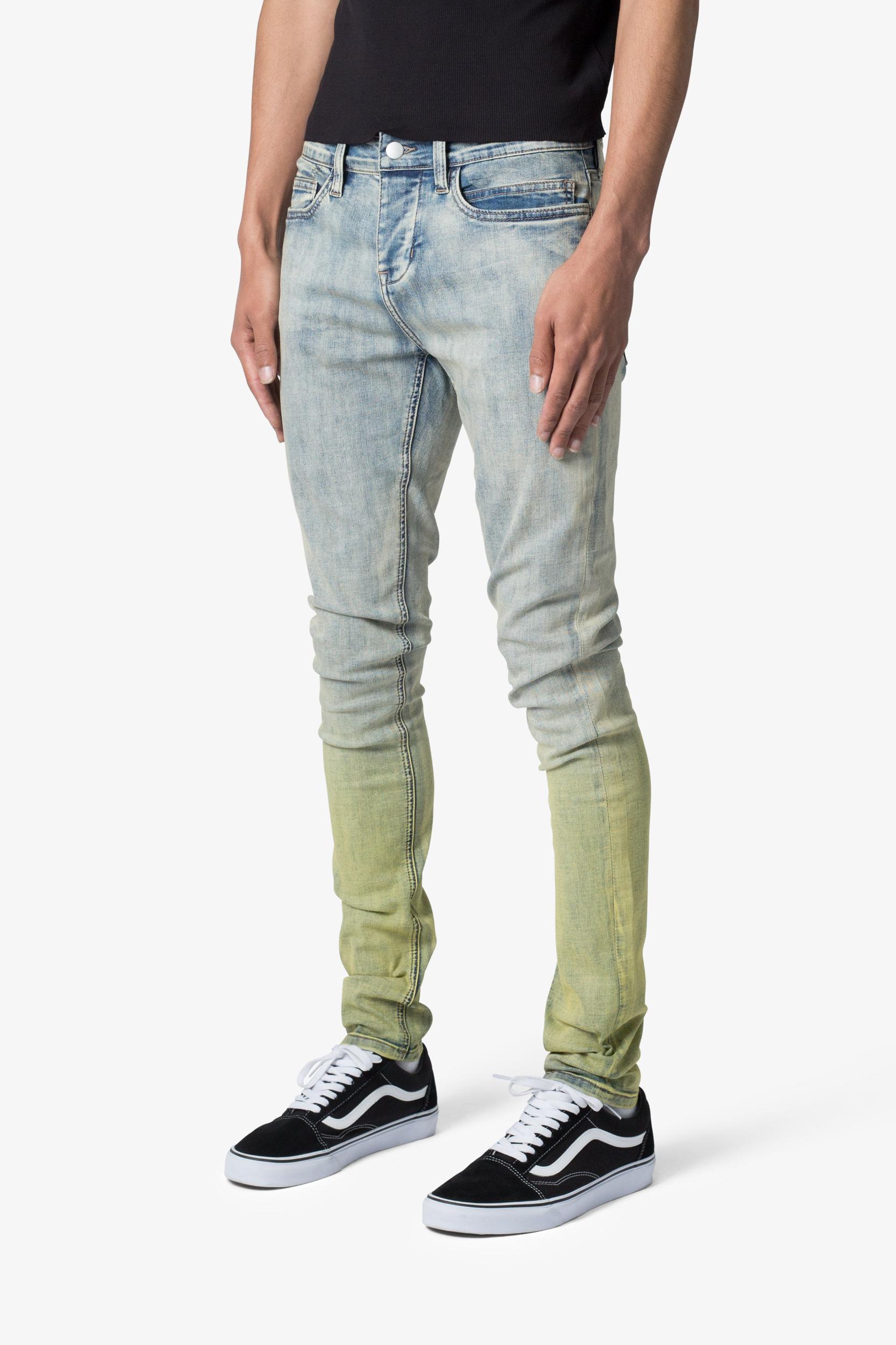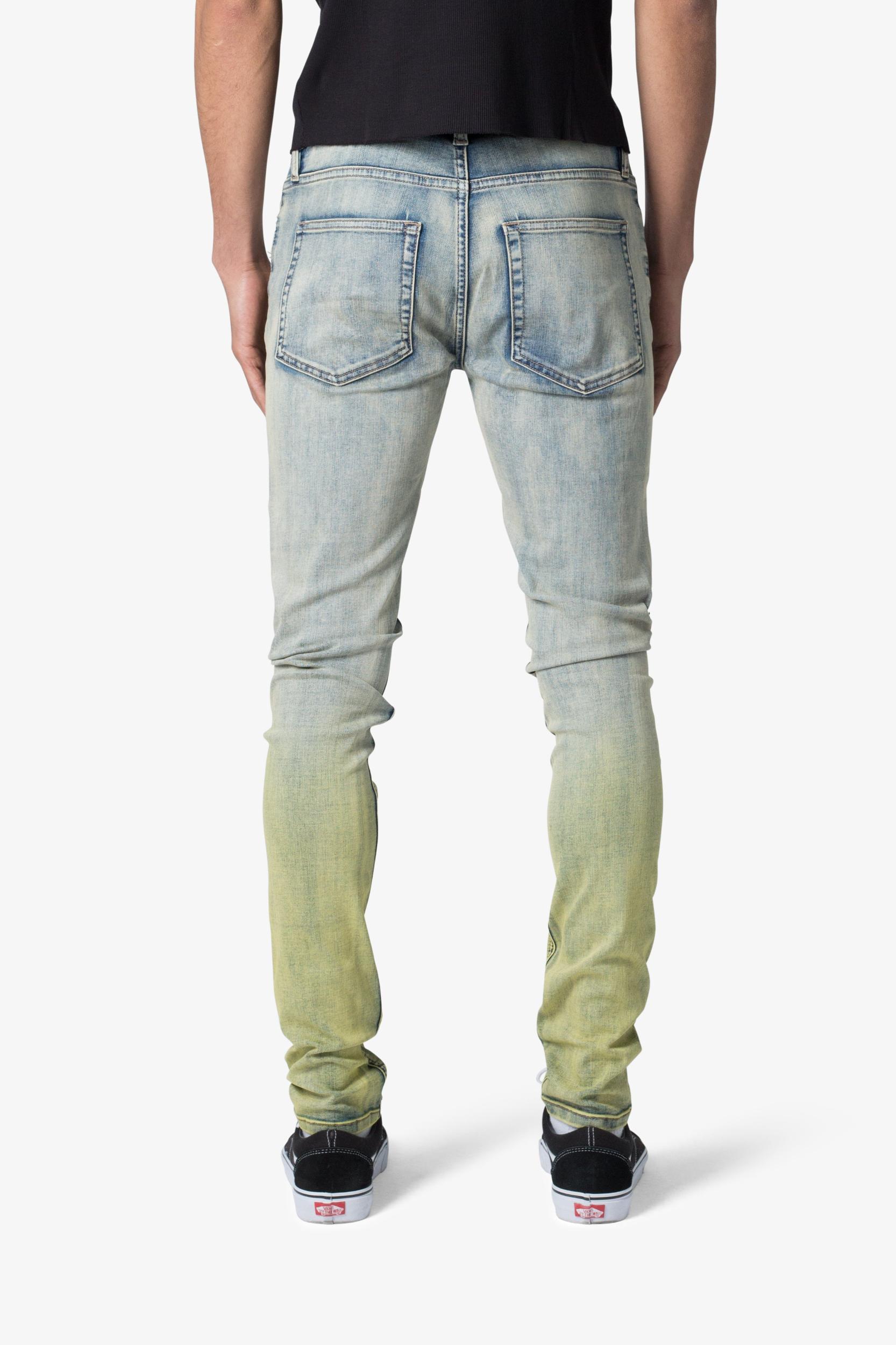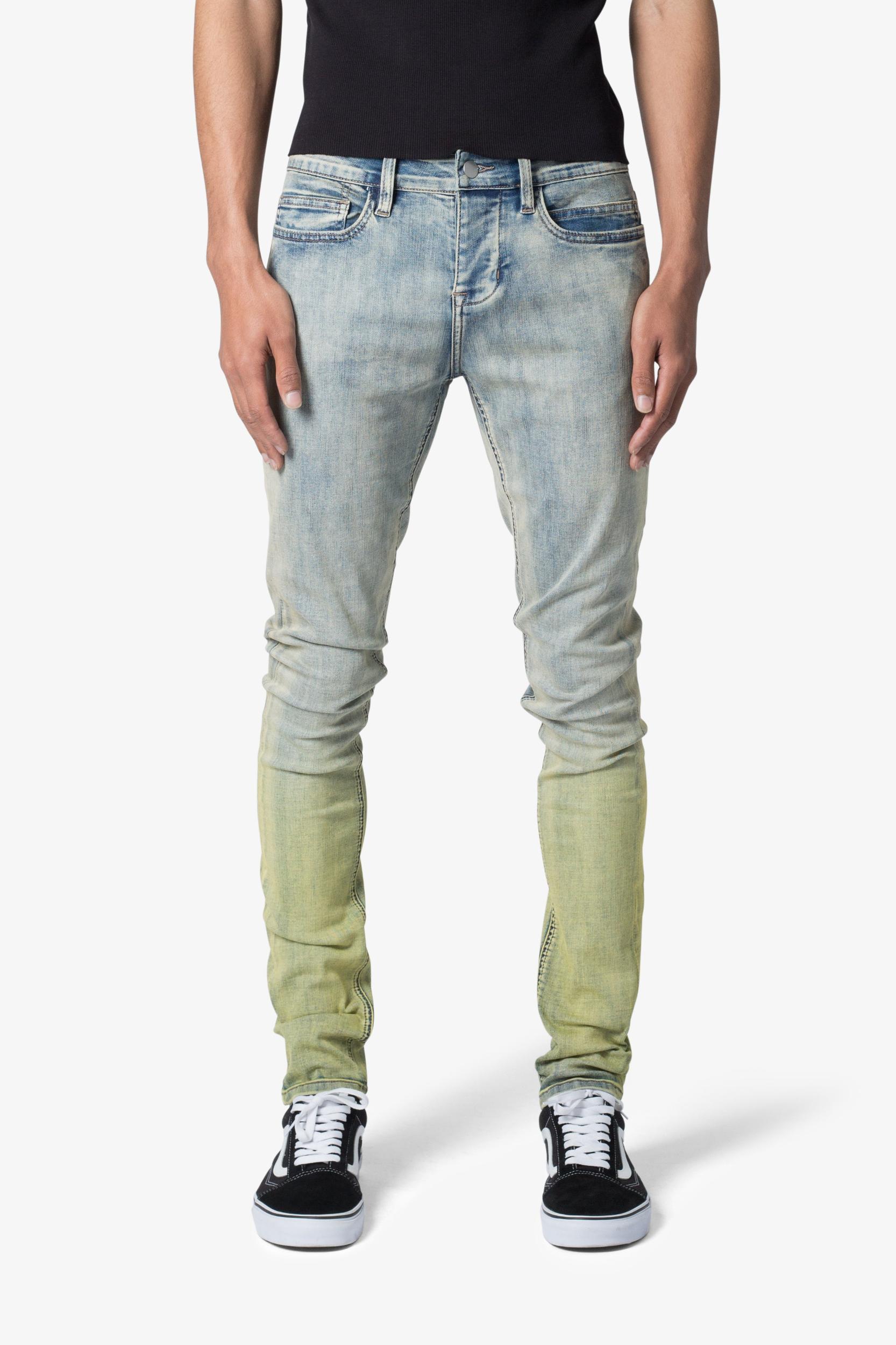 the X637 Gradient Skinny Denim is designed with our new X fit which is skinny throughout with an extended inseam for stacking, and features a medium base wash, and finished with an ombre wash from the leg opening. details skinny fit 78% cotton 22% polyester extended inseam for stacking model is 6’1, 140 lbs and wears