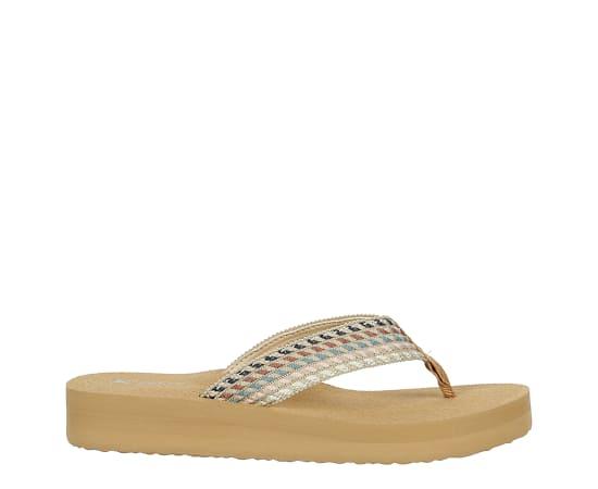 Xappeal Oakley Womens Flip-Flop Sandal Natural/Multicolor Prep for summer with the Xappeal Oakley flip-Flop Sandal. Featuring a woven fabric upper with a secure toe post, this thong Sandal is perfect for the pool or the beach. The footbed cradles your foot, while the textured outsole offers traction to keep pn the move. Fabric upper Slip-On Thong toe post Contoured footbed Textured outsole