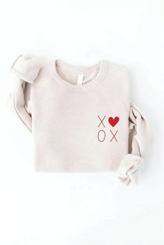 We can agree with this statement! This sweatshirt is made from polyester blend material, has a crew neckline, and has a classic varsity vibe to it! This material is seriously so super soft and cozy enough to keep you warm at all the games! Details Cranberry or Dust XOXO heart Sweatshirt Fabric has stretch Incredibly soft and cozy Pair this sweatshirt with jeans and sneakers! Unlined MEASUREMENTS LENGTH BUST SMALL 25" 40" MEDIUM 25.5" 42" LARGE 26" 44" XL 26.5" 46" Material and Care 52% Cotton, 48% Polyester Materials may have natural variations Colors may vary from different viewing devices. To keep your shirt's design as beautiful as possible, we do recommend washing this garment inside out on the gentle cycle with cold or lukewarm water. You can either tumble dry low or line dry.