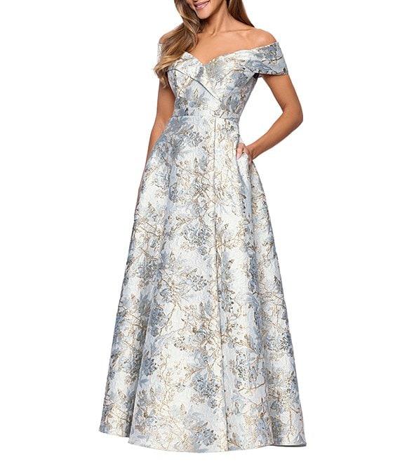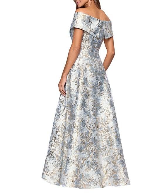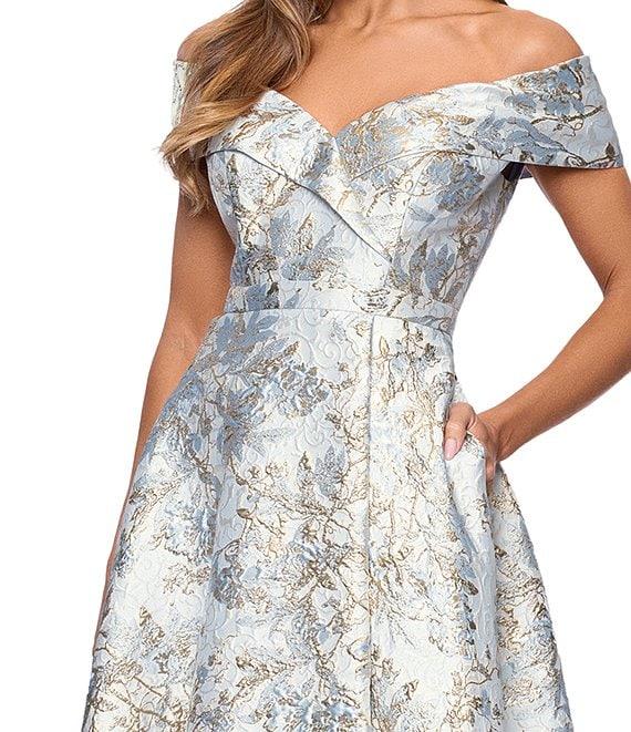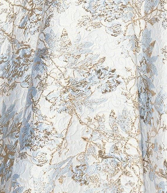 Xscape Petite Size Brocade Floral Print Sweetheart Neck Short Sleeve A-Line Gown