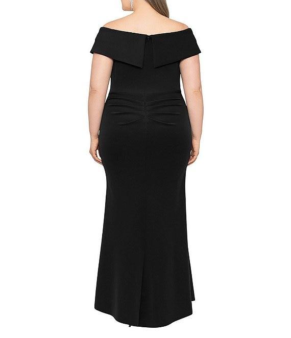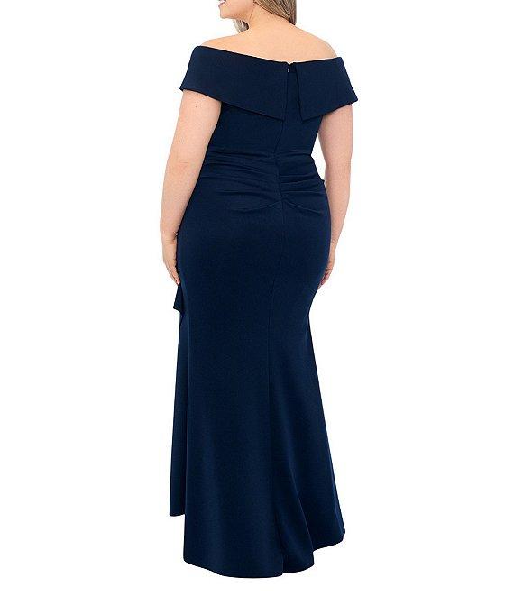 Xscape Plus Size Sleeveless Sweetheart Neck Cascade Ruffled Long Scuba Crepe Dress