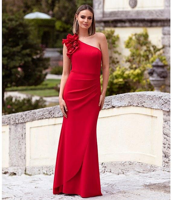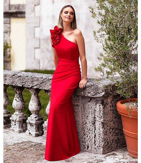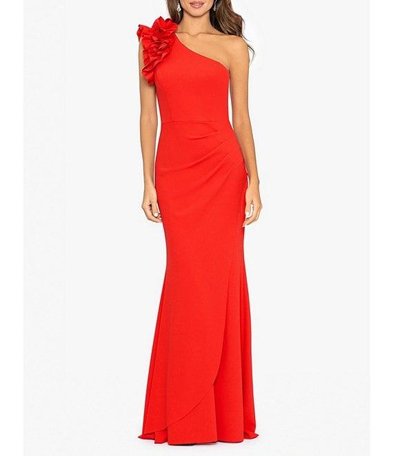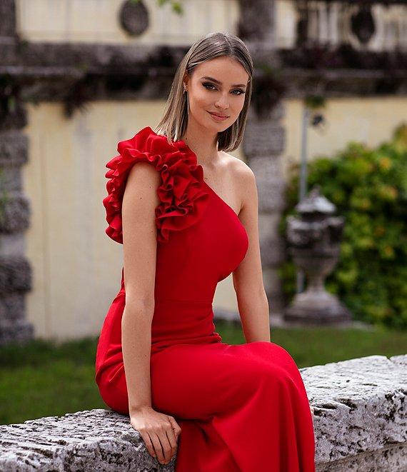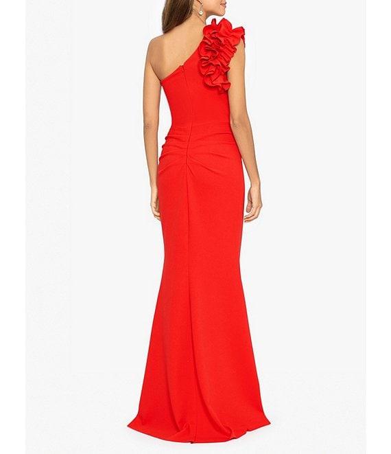 Xscape Stretch Scuba Crepe One Shoulder Ruffle Gown