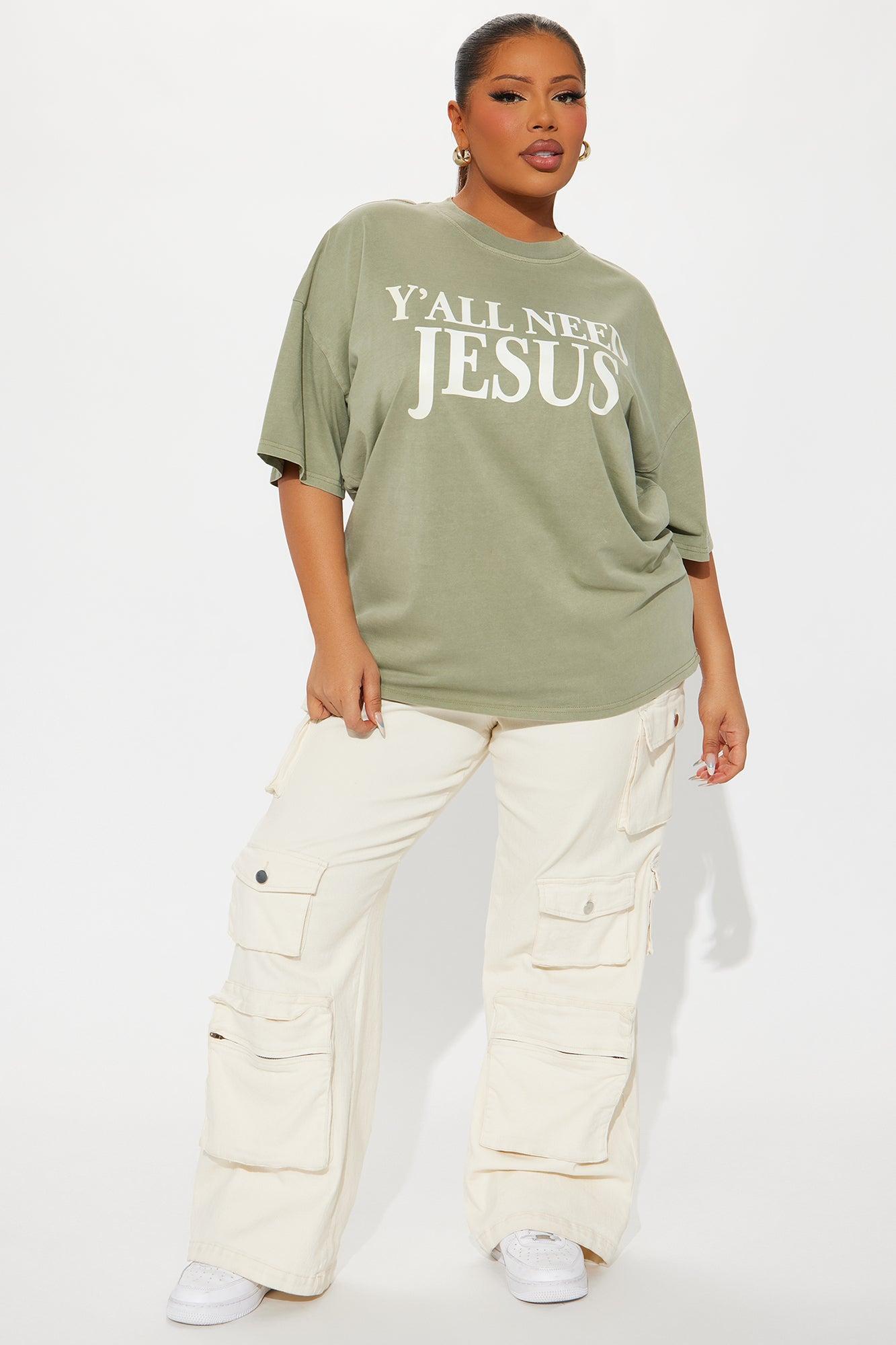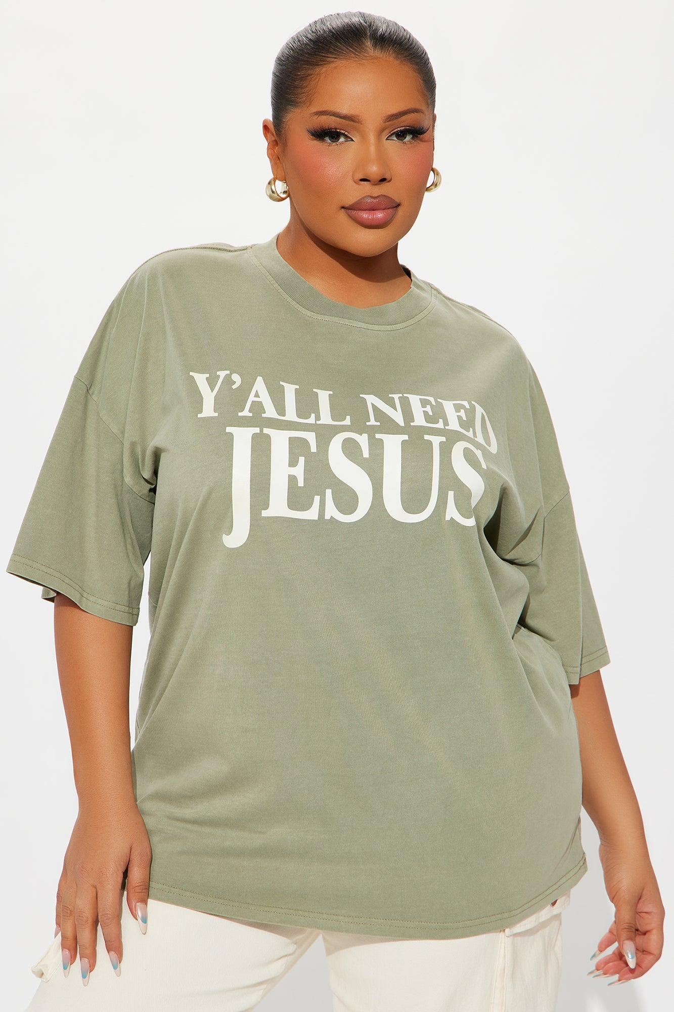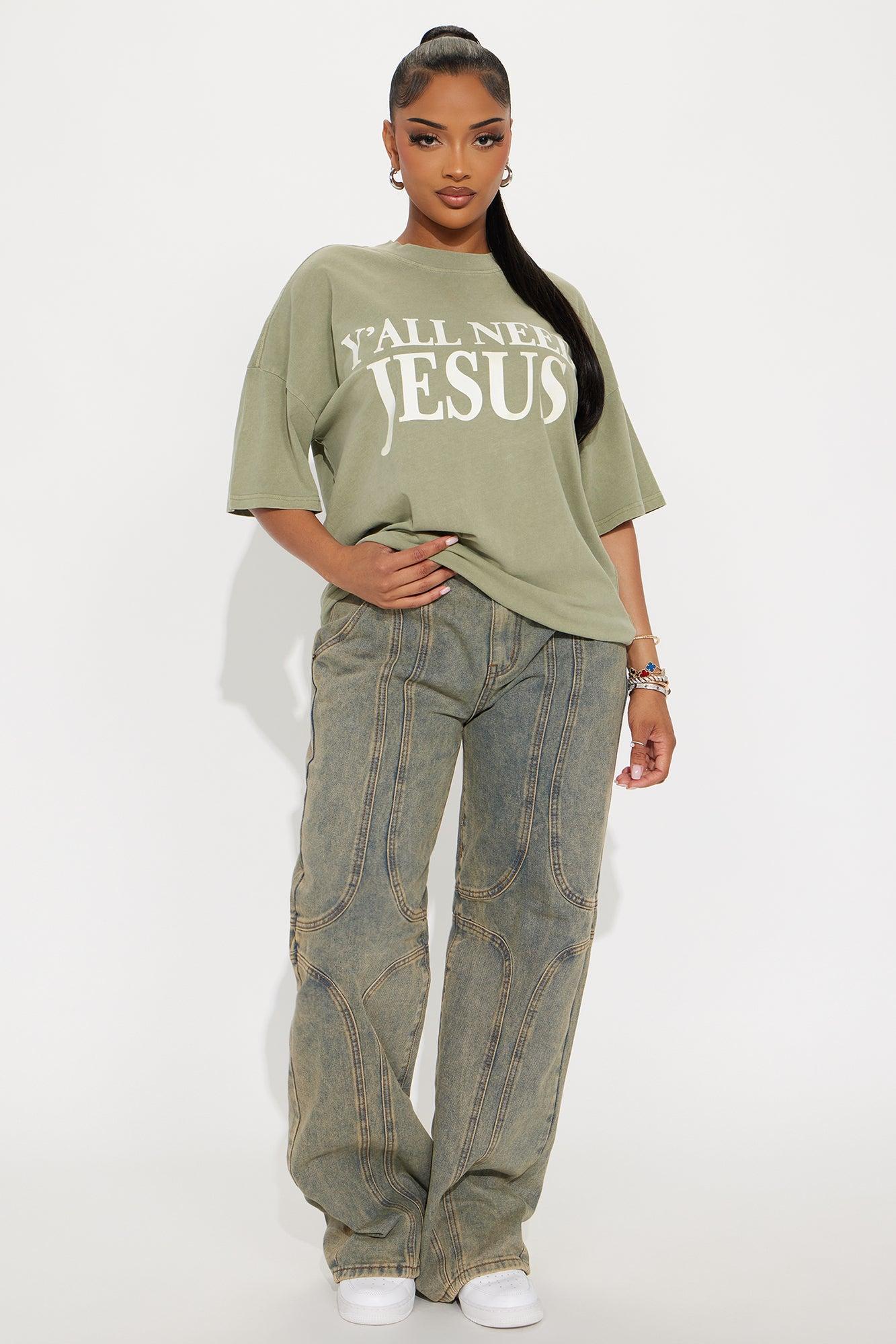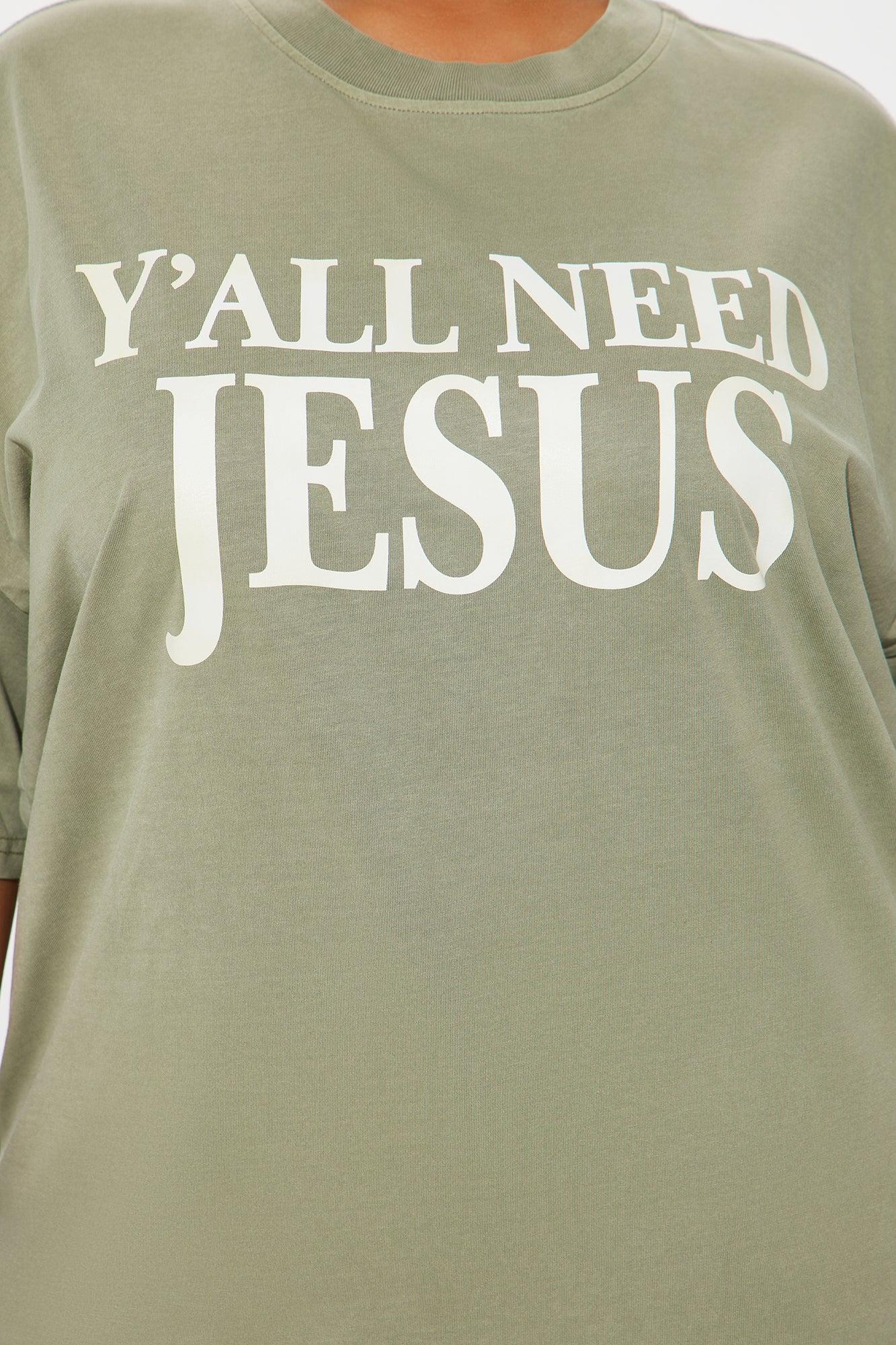 Y'all Need Jesus Washed Tee - Olive
