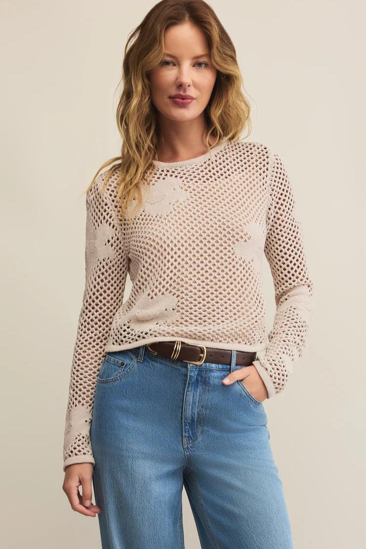 This sweater is ready to be layered over your favorite tank or bralette. This fun top features open mesh netting with a feminine floral design for a semi-sheer look and lightweight feel.