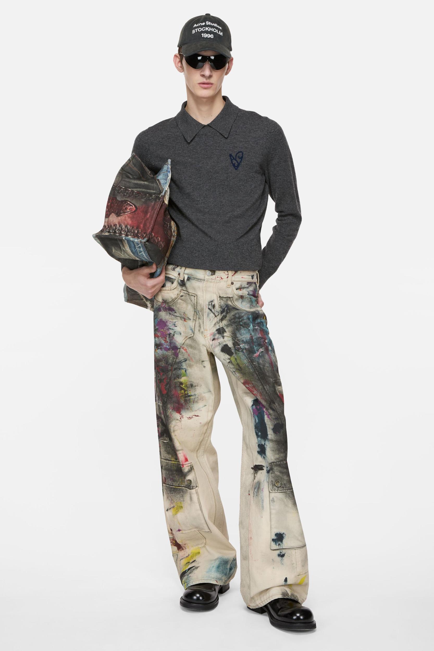 Polo collar knit crafted from carefully selected high-quality yak yarn, featuring Acne Studios heart jacquard branding. Finished with ribbed cuffs and hem. Cut to a fitted style and waist length. FN-MN-KNIT000572