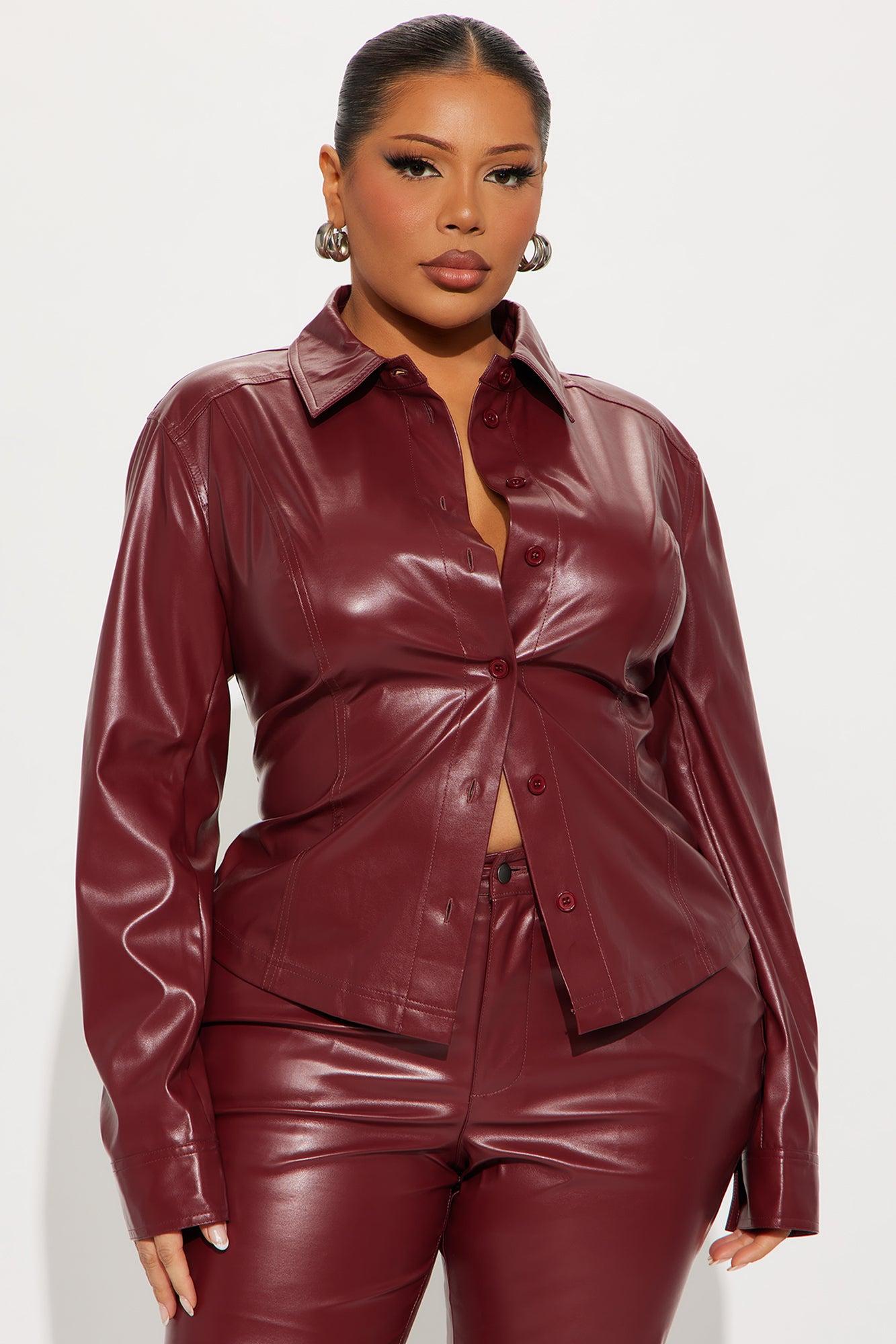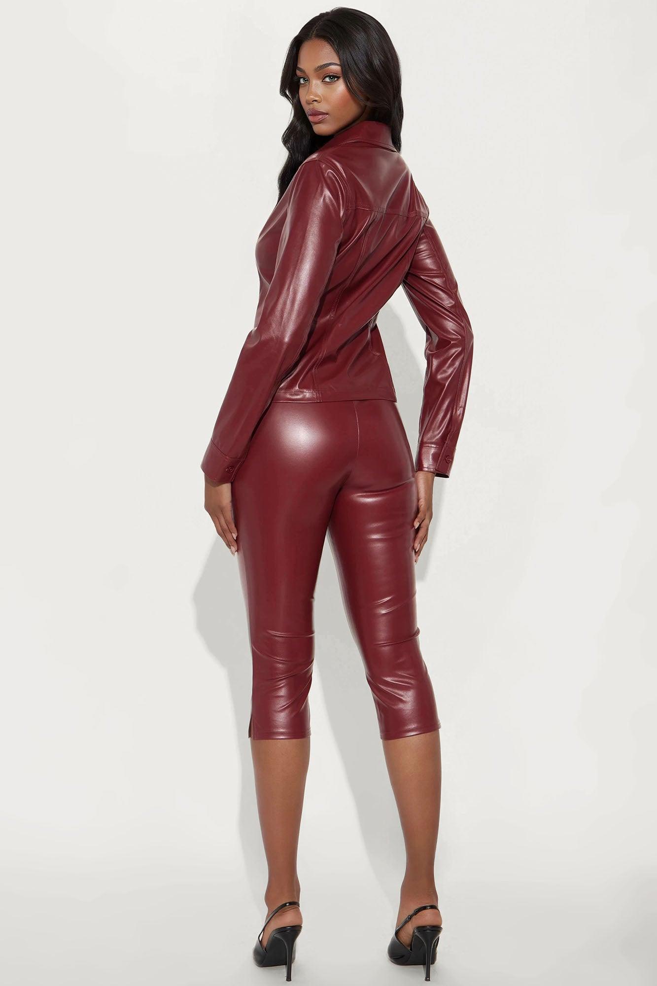 Yara Faux Leather Capri Pant Set - Burgundy Female Product Image