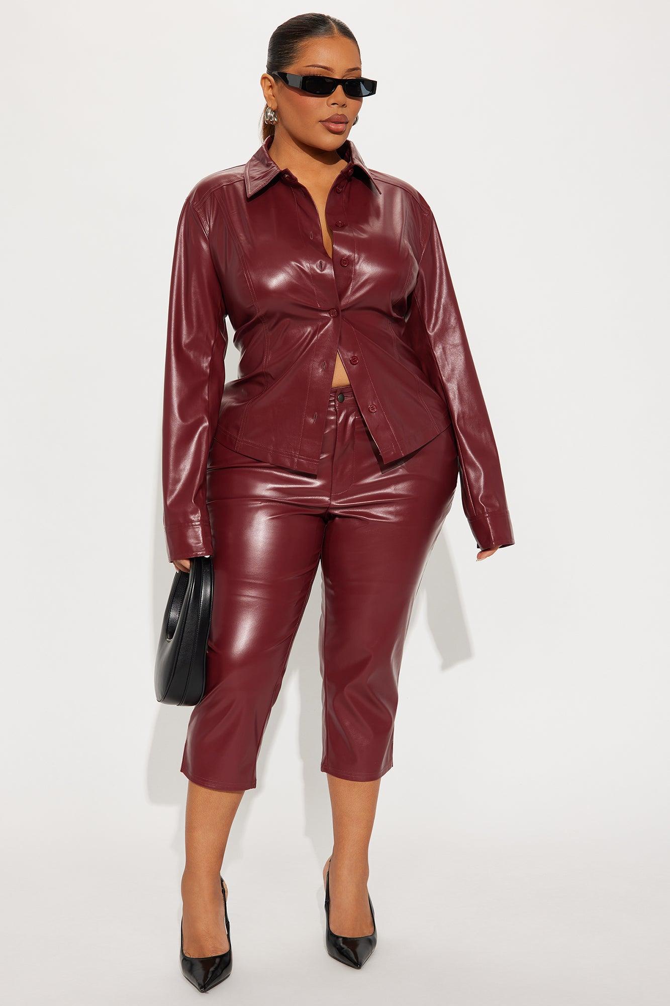 Yara Faux Leather Capri Pant Set - Burgundy Female