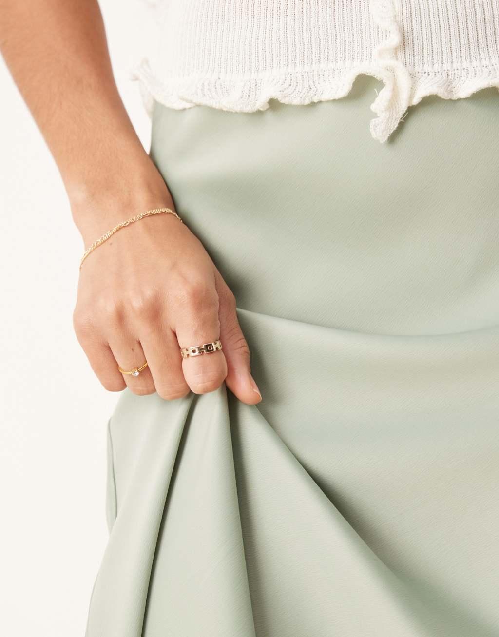 YAS satin midi skirt in iceberg green