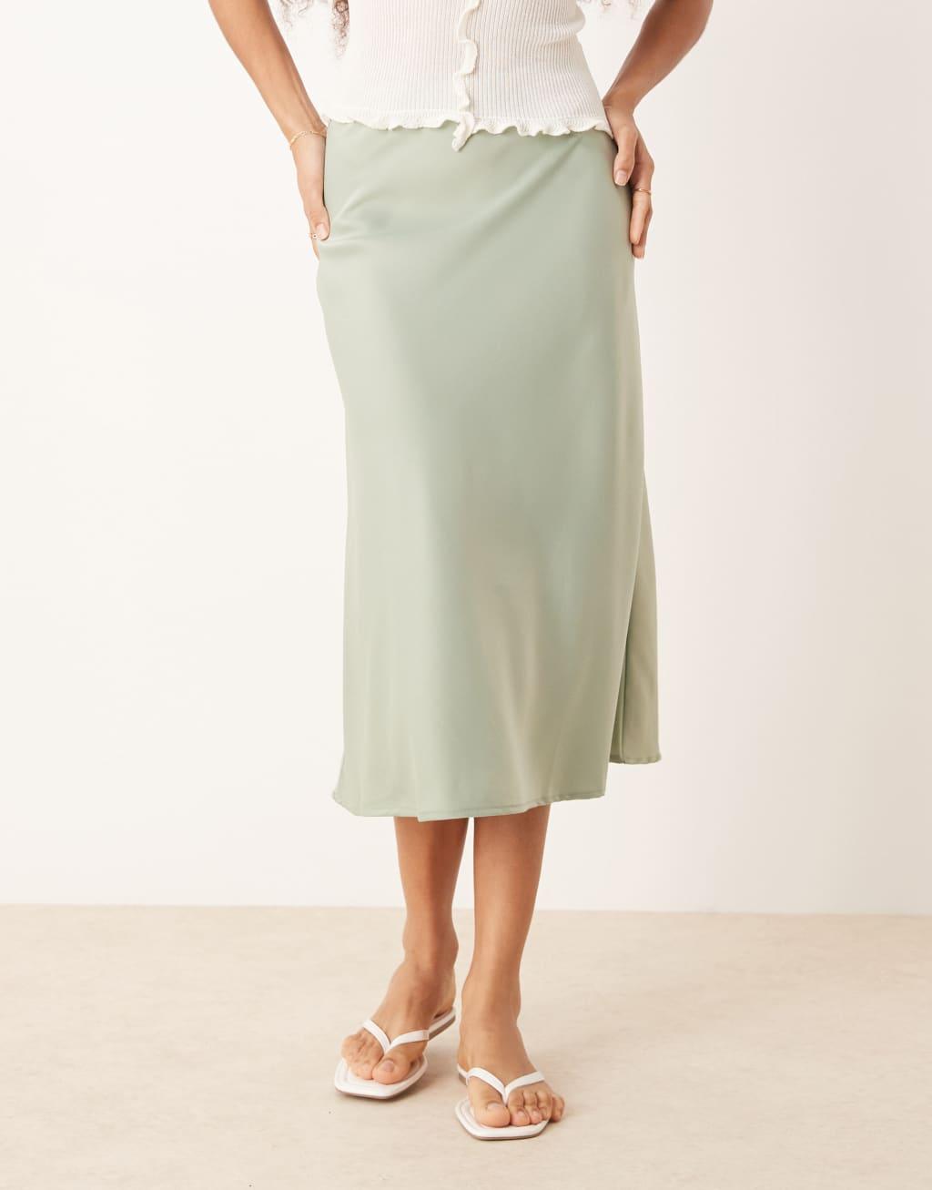 ASOS DESIGN satin bias cut midi skirt in green