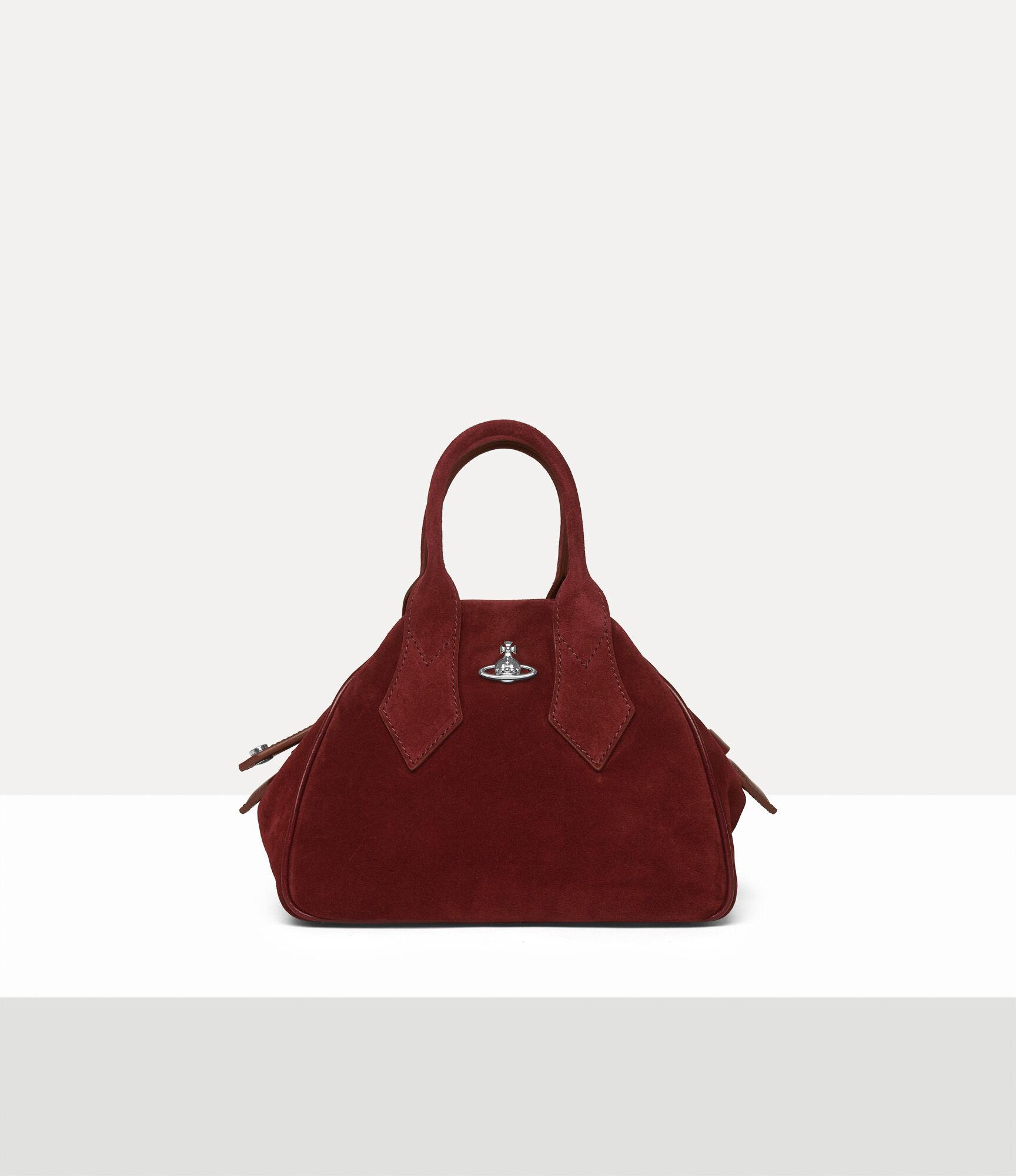 Our Yasmine Small bag is crafted from supple suede leather, adorned with a lustrous bas relief orb motif at the front. The piece offers the house's soft cotton 'Broken Pinstripe' interior lining, a unique twist on the traditional pinstripe pattern, first seen in the Vivienne Westwood Gold Label Autumn-Winter 2015 collection.