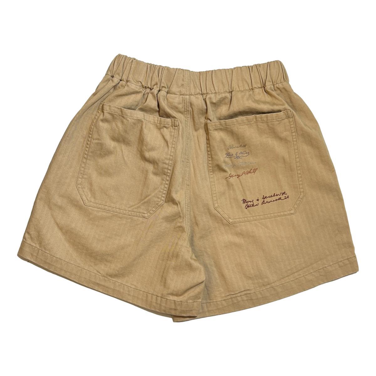 Samuel Zelig Yearbook Short Khaki 8 oz cotton herringboneTriple needle seam constructionElastic waistband with interior cotton drawcord Binding on interior of waist2 Back Pockets with vertical bar tacksOriginal embroidered artwork This garment has undergone a wash to remove all shrinkage