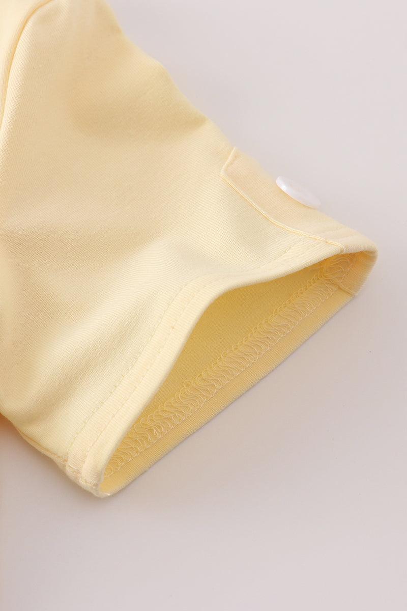 Brighten up your little one's wardrobe with our Yellow Character Applique Shorts Set! This playful ensemble features adorable character designs stitched with care onto sunny yellow fabric. Perfect for summer adventures, playdates, or just looking cute while running errands with mom and dad. Comfortable, washable, and guaranteed to bring smiles!