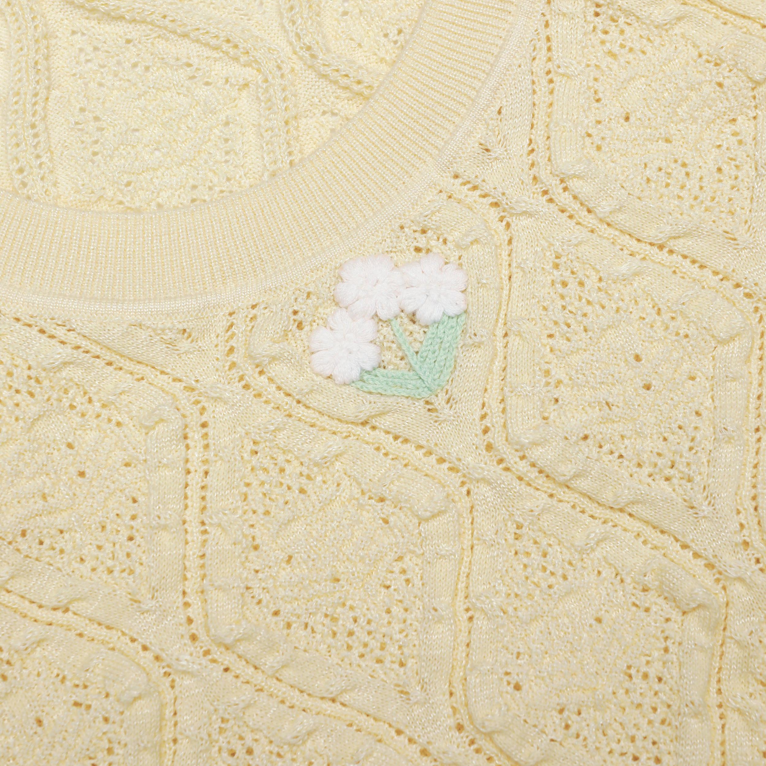Utterly radiant, channel playful sensuality in this yellow knit midi dress. Crafty floral embroidery adds an extra-charming touch to the neckline, whilst the flared hem boasts a chic contrast trim. True to sizeFabric has stretch Embroidery detailingContrast trimsScalloped hemModel is 5ft10/178cm and wears a size S