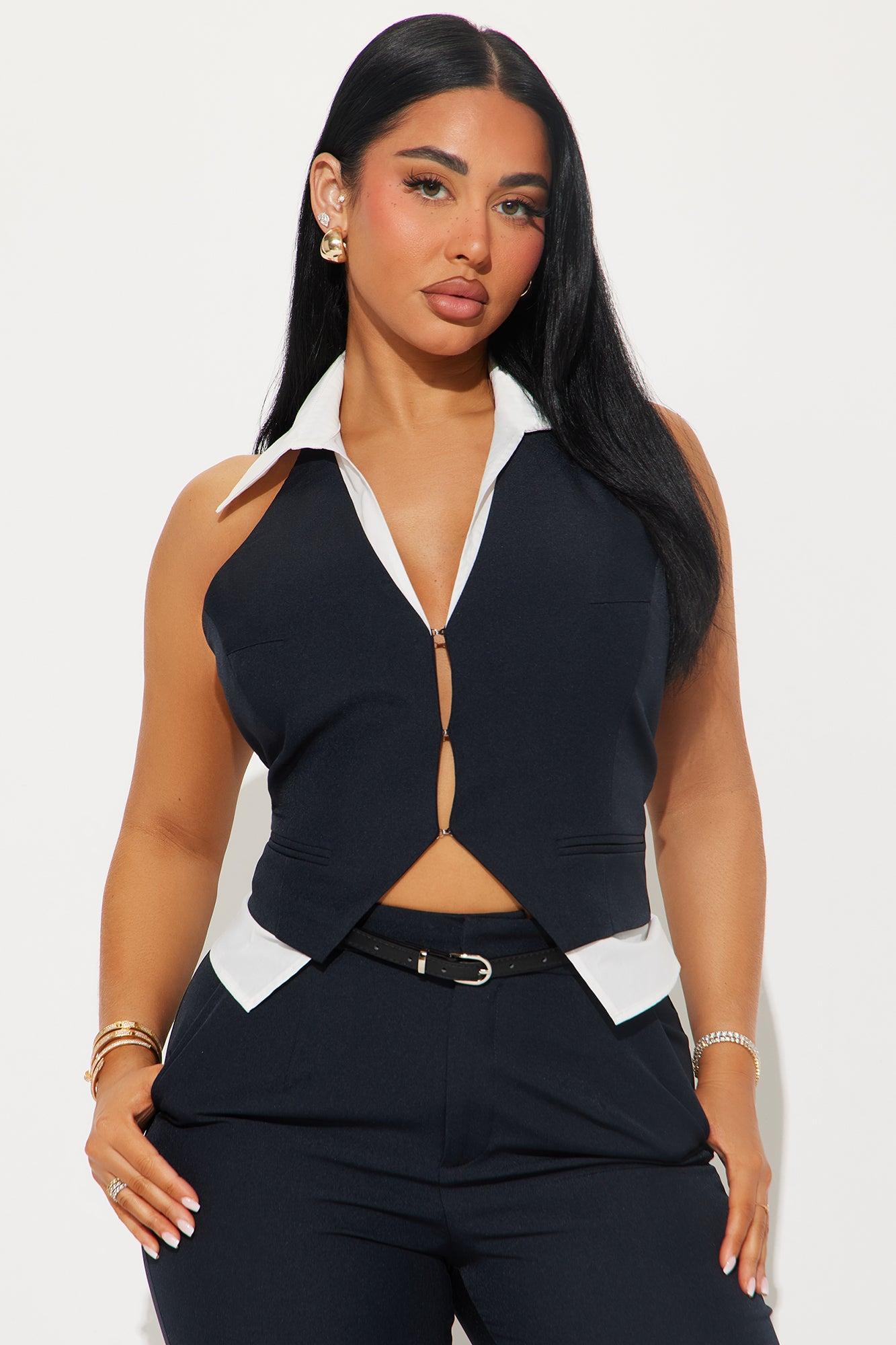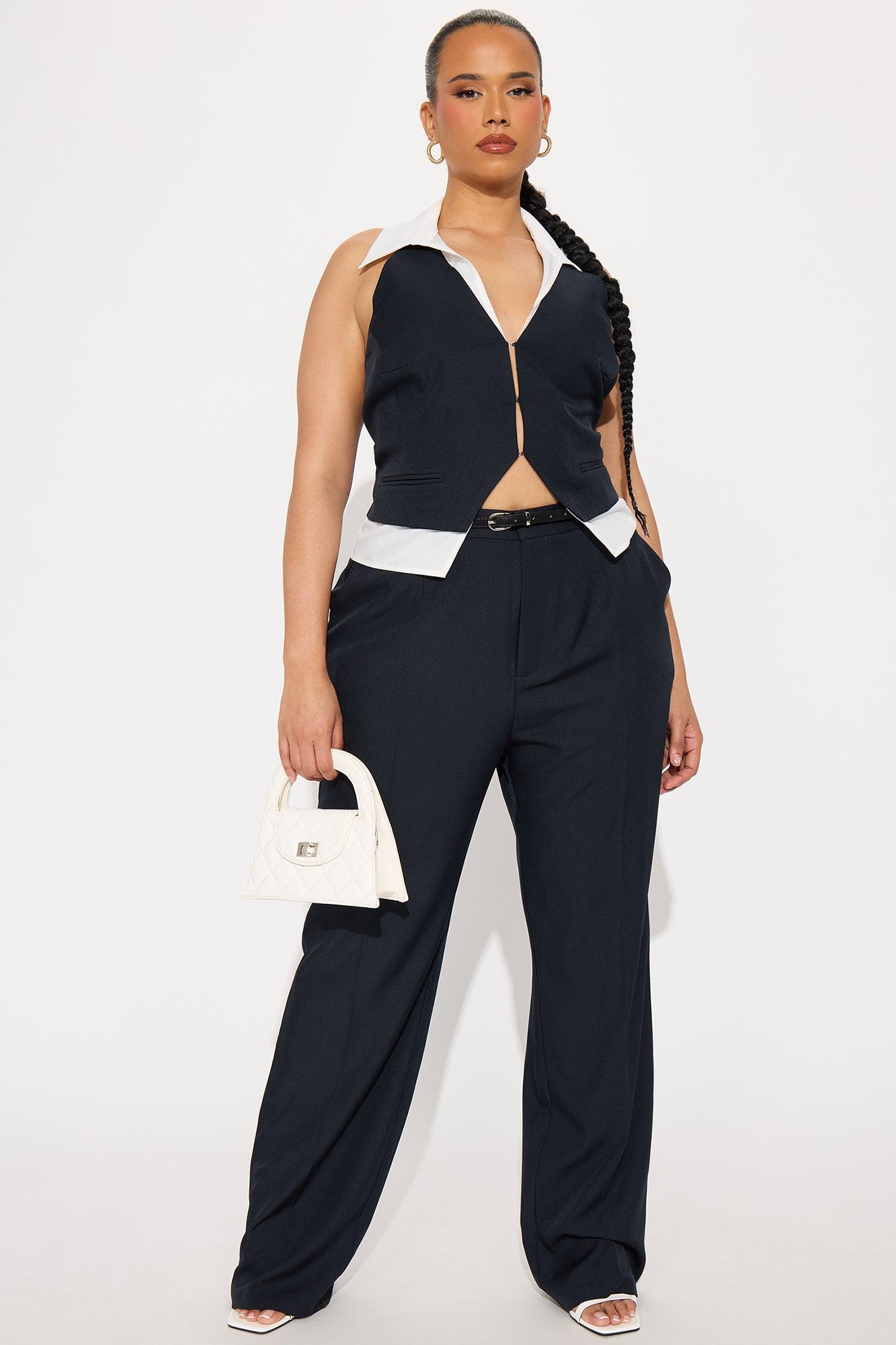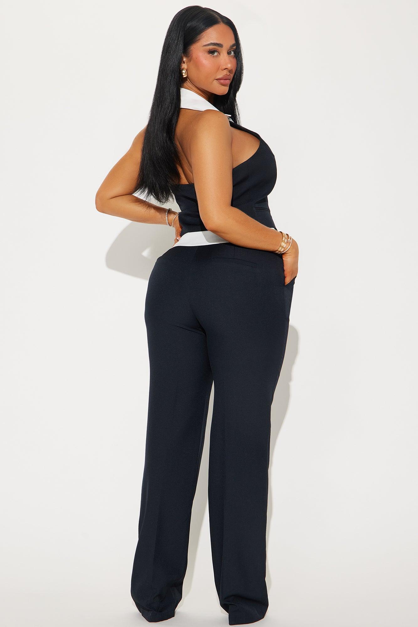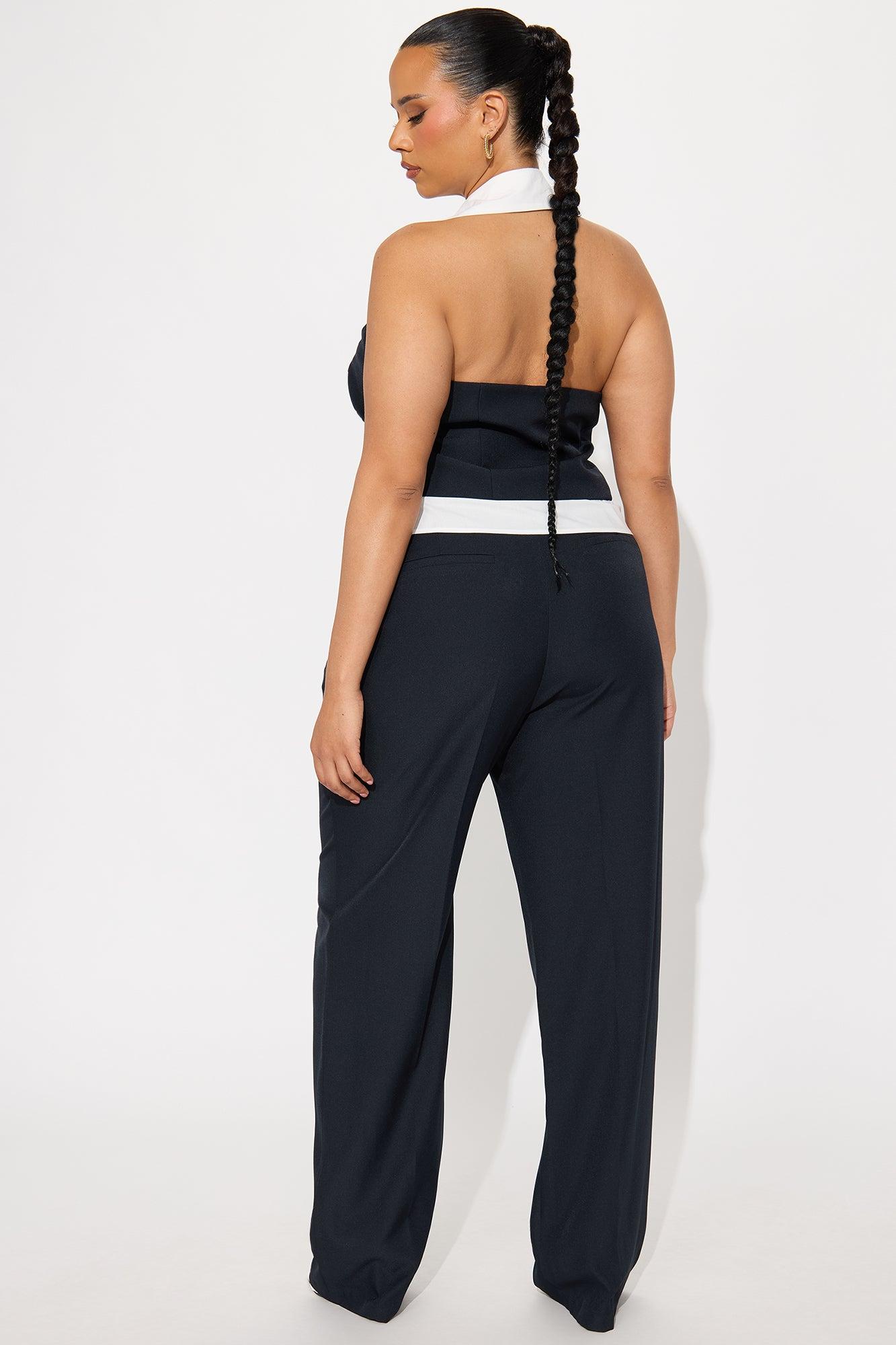 Available In Navy. Halter Vest Top And Wide Pant Non Stretch Regular 33" Inseam Front Clasp Closure On Vest Top Clasp And Zipper Closure On Pant Self : 95% Polyester , 5% Spandex Spandex : 65% Cotton , 35% Polyester Lining : 100% Polyester Imported