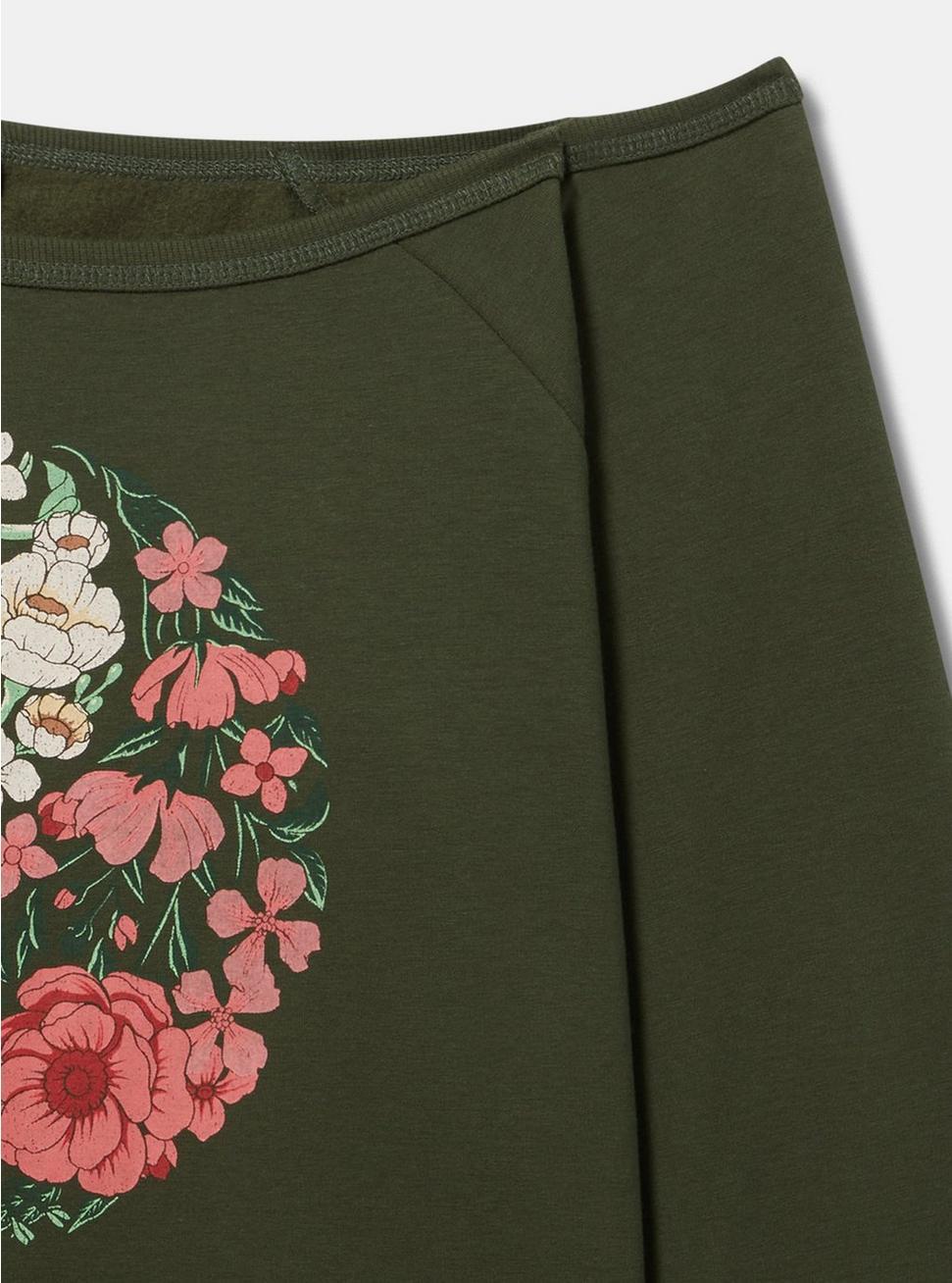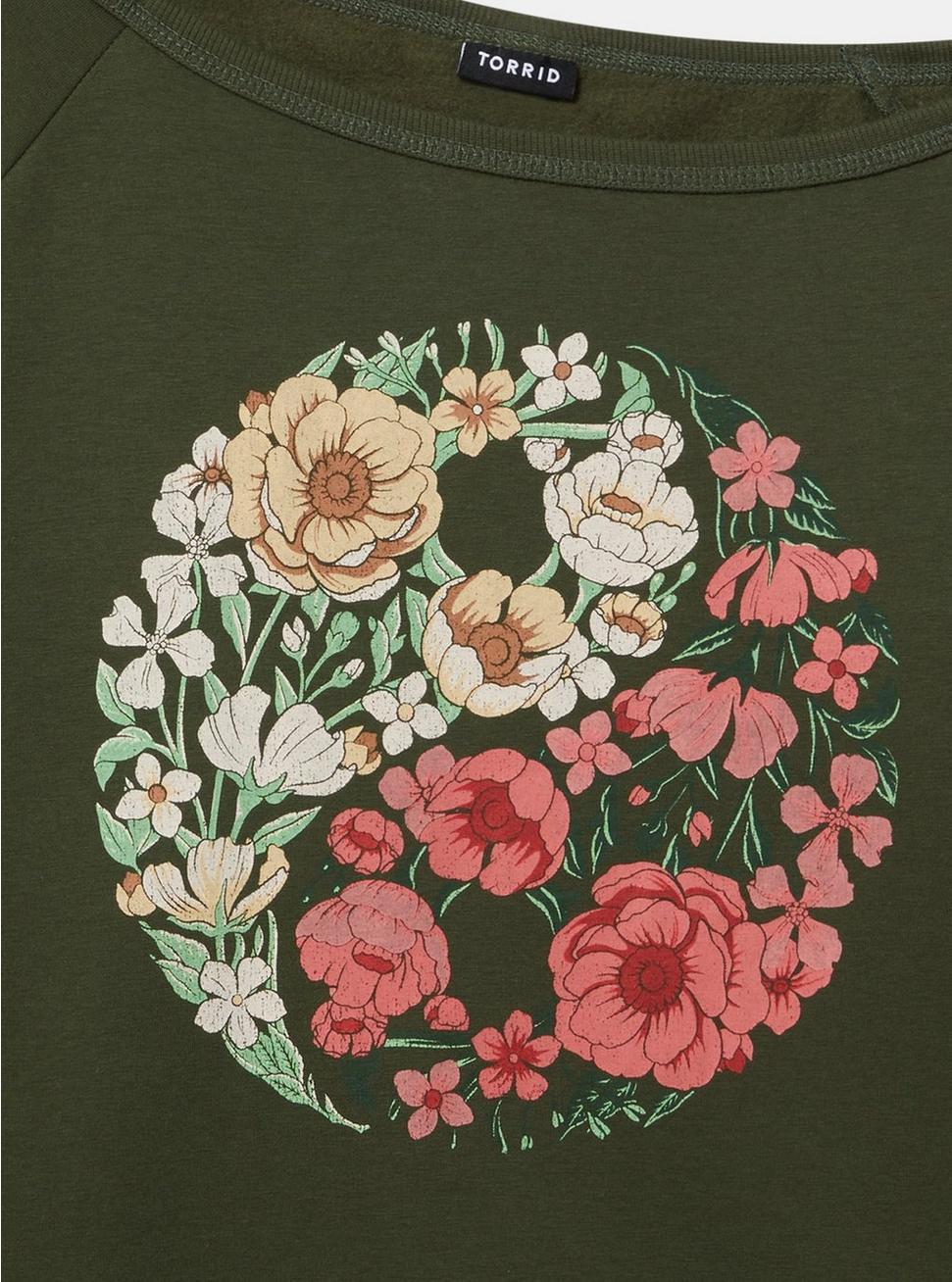 FITMeasures 30"" from shoulder (size 2).MATERIALS + CARESuper Soft Fleece knit fabric: A luxuriously soft and comfy fleece with tons of stretch.Stretch level: Maximum.57% cotton, 38% polyester, 5% spandex.Machine wash cold. Tumble dry low.Imported.DETAILS Off-shoulder neckline.Long sleeves. Yin-yang flower graphic.