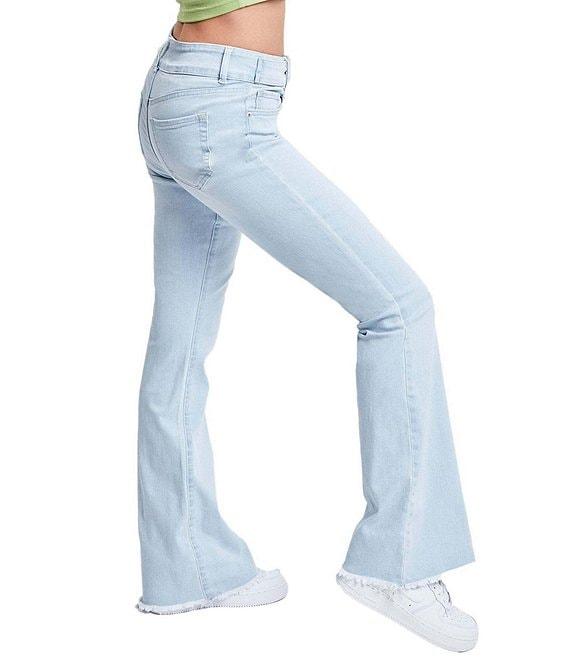 YMI Jeanswear Low Rise Denim Belt Frayed Hem Flare Jeans