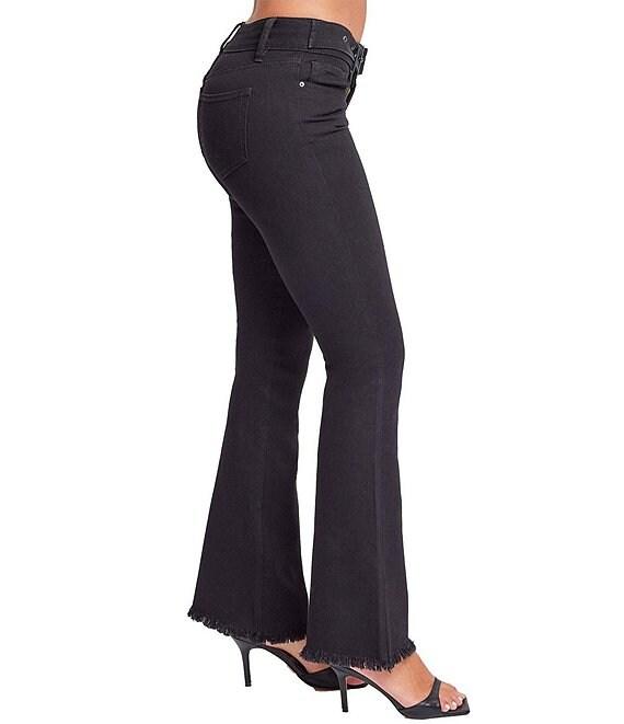YMI Jeanswear Low Rise Frayed Hem Buckle Flare Jeans