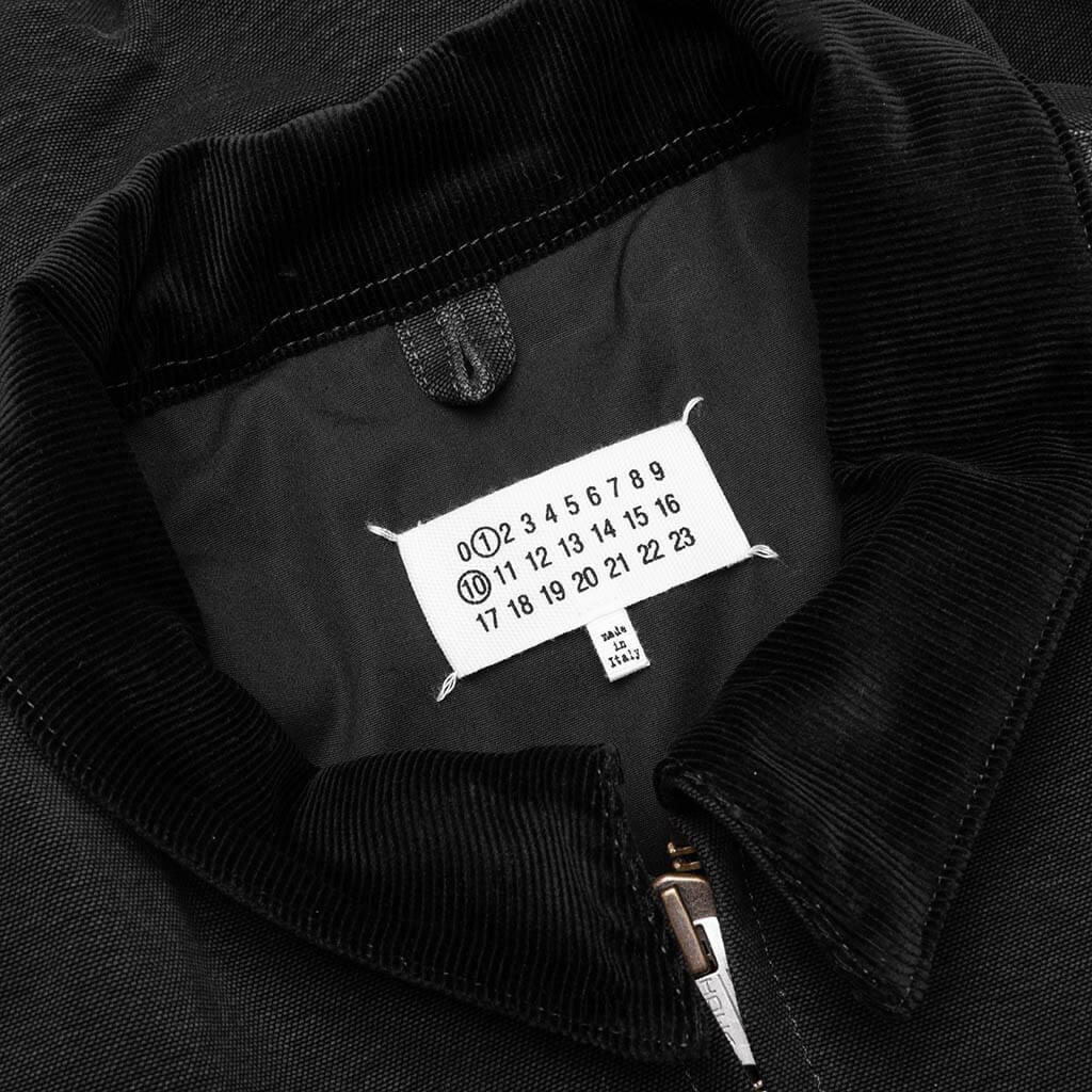 The Yoke Caban Jacket from Maison Margiela blends timeless style with utilitarian aesthetic. Crafted with cotton and polyester, the jacket features contrast corduroy collar and a ribbed hem and cuffs. A full zipper closure and side pockets are placed on the front. A Maison Margiela label tag on the interior, and signature four stitches appear on the back, opposite of the label. Primary fabric: 100% cotton Padding and sleeve lining: 100% polyester Contrast corduroy collar Ribbed hem and cuffs Full zipper closure Four stitches appear on the back Maison Margiela label tag Style No: S50AM0640 M35255 861