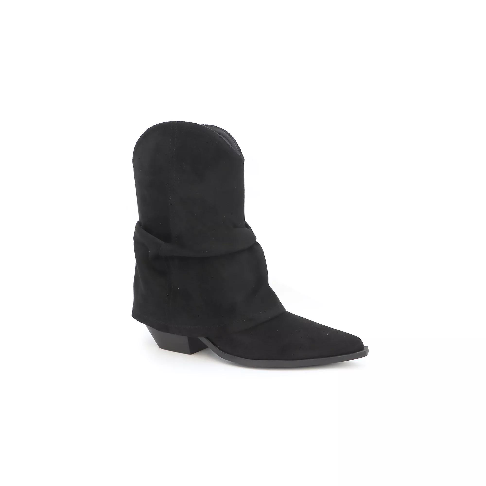 Embrace effortless western charm with these stylish booties from Yoki, designed to elevate your everyday look. The slouchy silhouette and foldover design offer a relaxed vibe, effortlessly pairing with jeans or flowy dresses, while the pointed toe and low block heel provide a chic touch and all-day comfort for any adventure. Click this FOOTWEAR GUIDE to find the perfect fit and more! - https://www.kohls.com/feature/shoesizeguide.jsp. FEATURES: Slouchy silhouette with soft faux suede finish for relaxed charm, Pointed toe and angled low block heel for a sleek, refined look, Water-resistant design for added durability, Pull-on tabs for easy wear and foldover design for a casual vibe. DETAILS: Pointed toe, Pull-on closure, 1" heel height, 1" platform height, Slip-resistant outsole, Imported. FIT & SIZE: Mid-calf boot shaft, 15 inch shaft circumference, 15 inch shaft height. MATERIAL & CARE: Synthetic upper, Synthetic lining, Synthetic midsole, Rubber outsole, Spot clean. Size: 8.5. Color: Black. Gender: female. Age Group: adult.