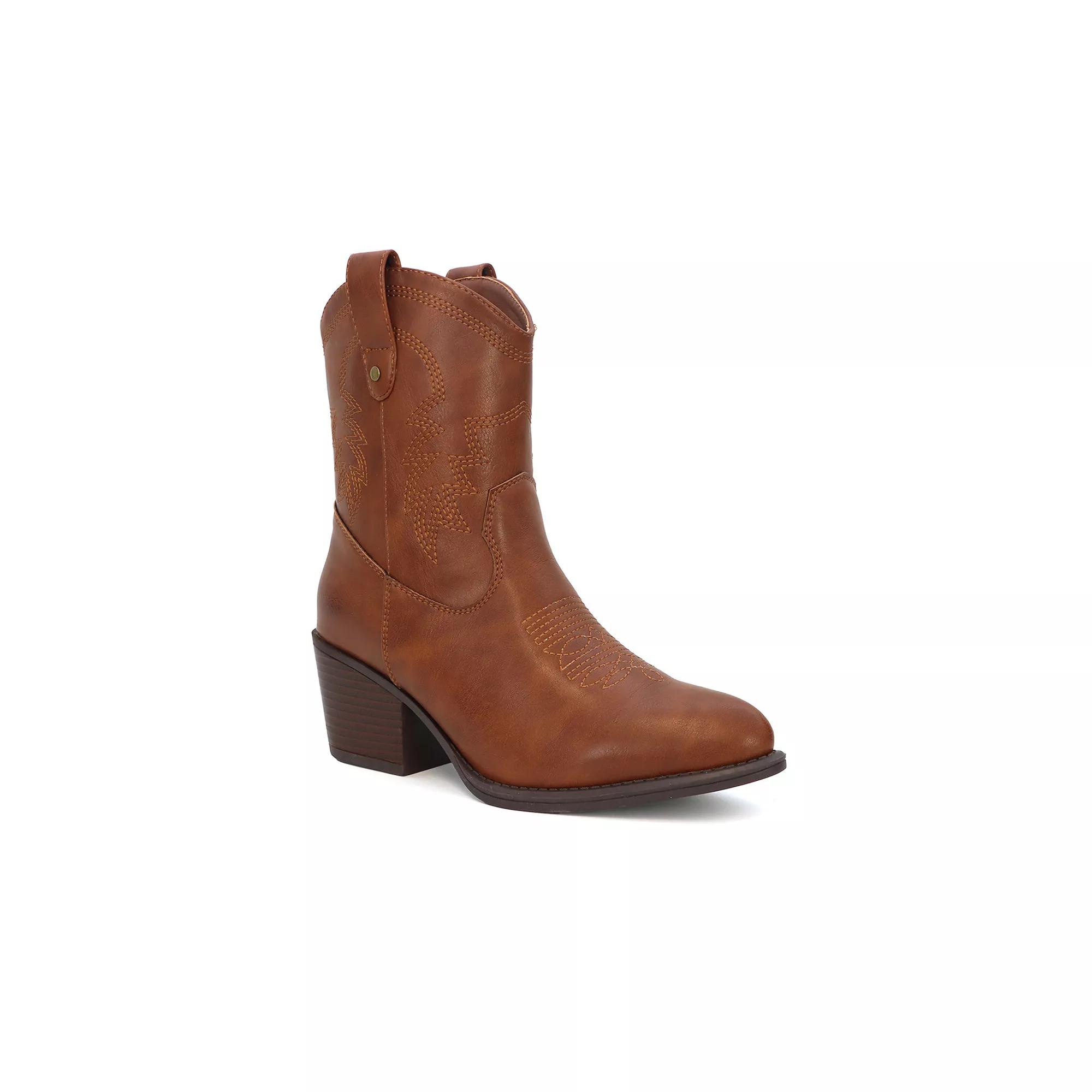 The GAYLE-88 bootie from Yoki is the perfect blend of bold western style and modern sophistication. With its sleek silhouette, pointed toe, and subtle block heel, this versatile piece effortlessly enhances any outfit, whether you're rocking denim or dressing up with a flowy dress. Click this FOOTWEAR GUIDE to find the perfect fit and more! - https://www.kohls.com/feature/shoesizeguide.jsp. FEATURES: Sleek faux leather outer for a modern look, Classic pull tabs and pointed toe design, Slight block heel for added lift, Water-resistant for durability. DETAILS: Pointed toe, Pull-on closure, 1" heel height, 1" platform height, Slip-resistant outsole, Imported. FIT & SIZE: Mid-calf design, 15 inch shaft height, 15 inch shaft circumference. MATERIAL & CARE: Synthetic upper, lining, and midsole, Rubber outsole, Spot clean. Size: 10. Color: Cognac. Gender: female. Age Group: adult.