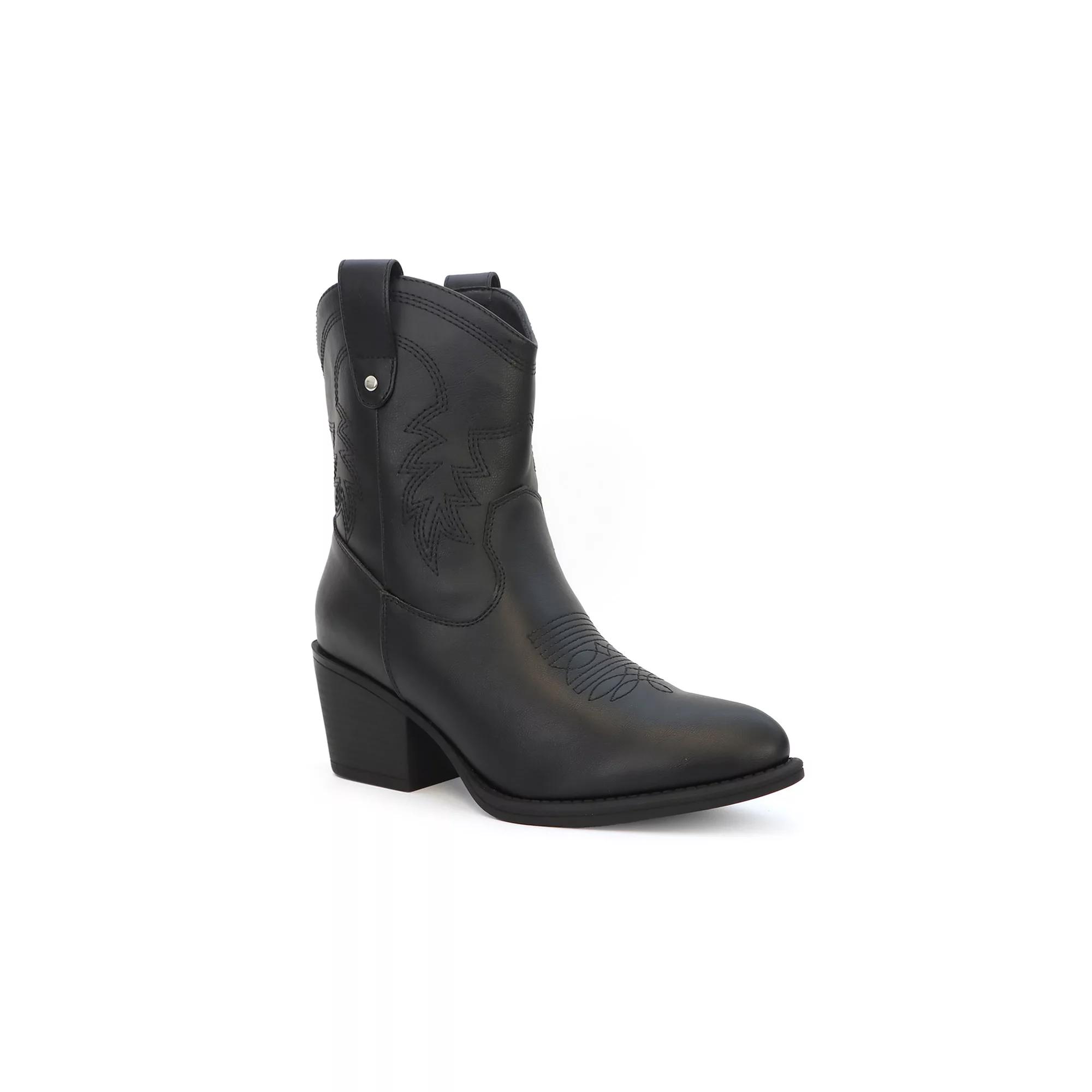 The GAYLE-88 bootie from Yoki is the perfect blend of bold western style and modern sophistication. With its sleek silhouette, pointed toe, and subtle block heel, this versatile piece effortlessly enhances any outfit, whether you're rocking denim or dressing up with a flowy dress. Click this FOOTWEAR GUIDE to find the perfect fit and more! - https://www.kohls.com/feature/shoesizeguide.jsp. FEATURES: Sleek faux leather outer for a modern look, Classic pull tabs and pointed toe design, Slight block heel for added lift, Water-resistant for durability. DETAILS: Pointed toe, Pull-on closure, 1" heel height, 1" platform height, Slip-resistant outsole, Imported. FIT & SIZE: Mid-calf design, 15 inch shaft height, 15 inch shaft circumference. MATERIAL & CARE: Synthetic upper, lining, and midsole, Rubber outsole, Spot clean. Size: 9. Color: Black. Gender: female. Age Group: adult.