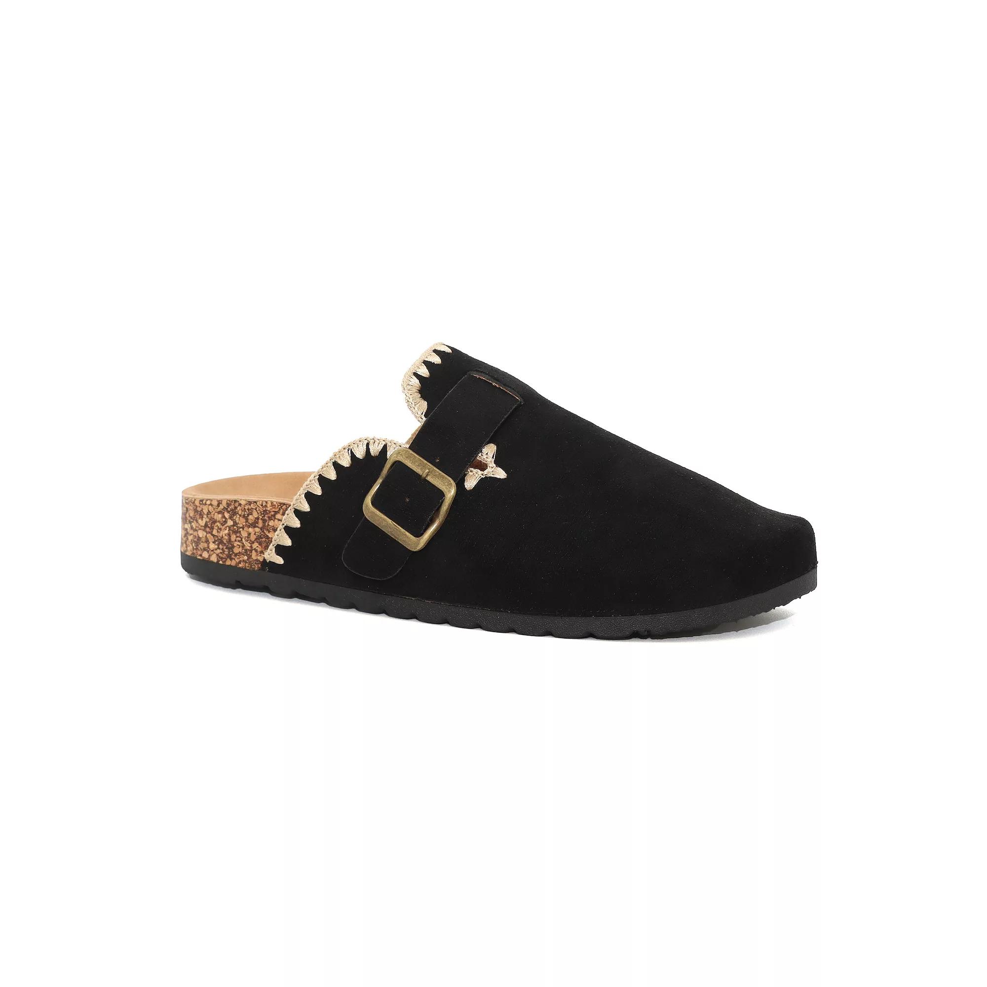 Discover the ultimate blend of comfort and style with YOKI's cozy clogs, designed for your everyday adventures. Featuring a classic round toe, adjustable buckle strap, and charming stitching, these slip-ons seamlessly enhance your outfit while providing cushioned support for effortless wear from errands to leisurely weekends. Click this FOOTWEAR GUIDE to find the perfect fit and more! - https://www.kohls.com/feature/shoesizeguide.jsp. FEATURES: Soft faux suede construction for comfort and style, Classic round toe with adjustable buckle strap, Detailed stitching trim for a handcrafted touch, Contoured cork footbed for cushioned support, Water-resistant design for added durability. DETAILS: Round toe, Slip-on closure, 1 inch heel height, Slip-resistant outsole, 1 inch platform height, Imported. MATERIAL & CARE: Synthetic upper and lining, Synthetic midsole, Rubber outsole, Spot clean. Size: 7.5. Color: Black. Gender: female. Age Group: adult.