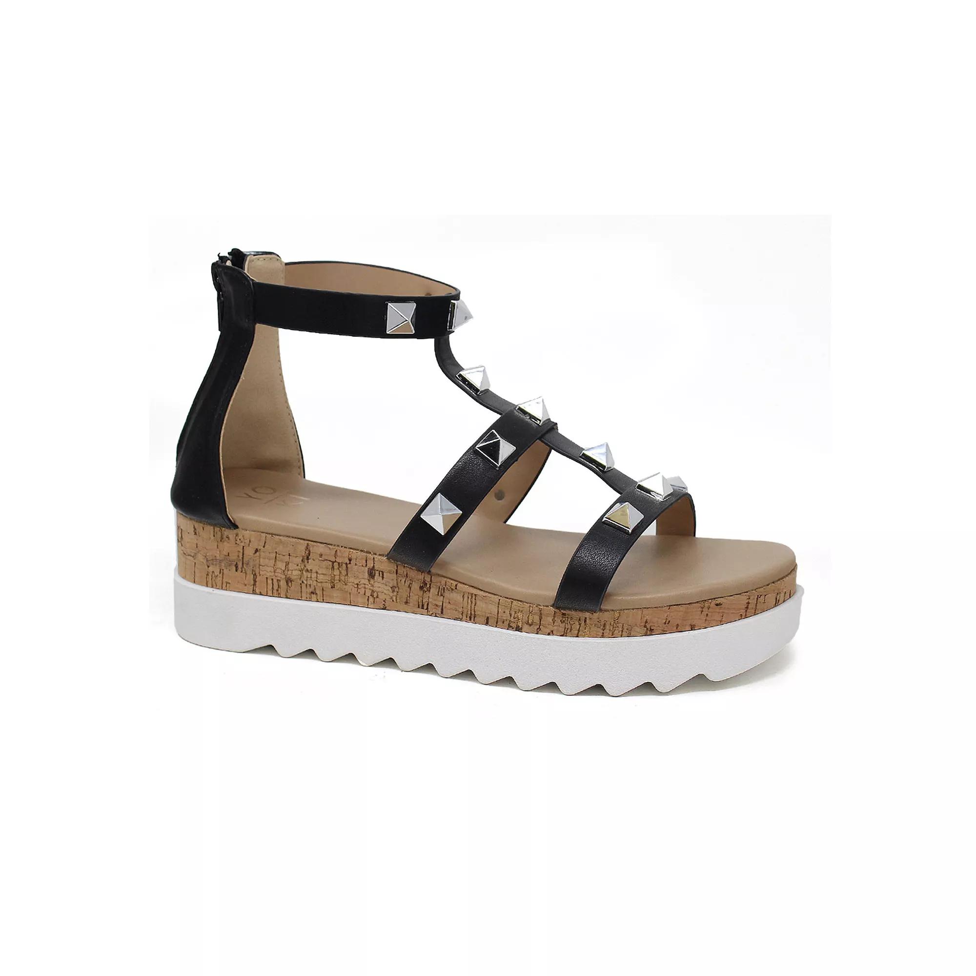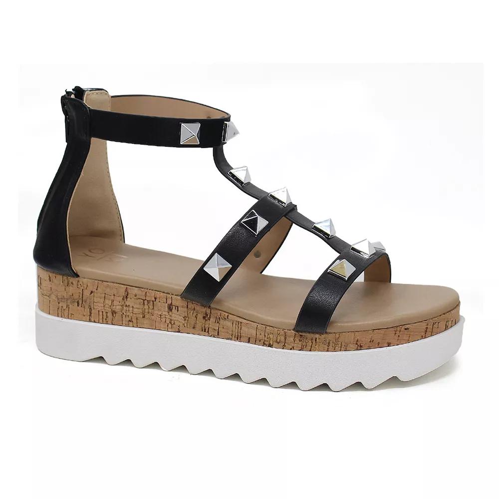 Add a stylish edge to your looks with these Yoki Jackie 25 womens wedge sandals.Click this FOOTWEAR GUIDE to find the perfect fit and more! Add a stylish edge to your looks with these Yoki Jackie 25 womens wedge sandals. Click this FOOTWEAR GUIDE to find the perfect fit and more! SANDAL FEATURES Pyramid stud details Soft and flexible insole for all-day comfortSANDAL CONSTRUCTION Faux leather upper Manmade lining Rubber midsole Manmade outsoleSANDAL DETAILS Open toe Buckle closure Foam footbed 3-in. platform Size: 5.5. Color: Charcoal. Gender: female. Age Group: adult. Material: Synthetic.