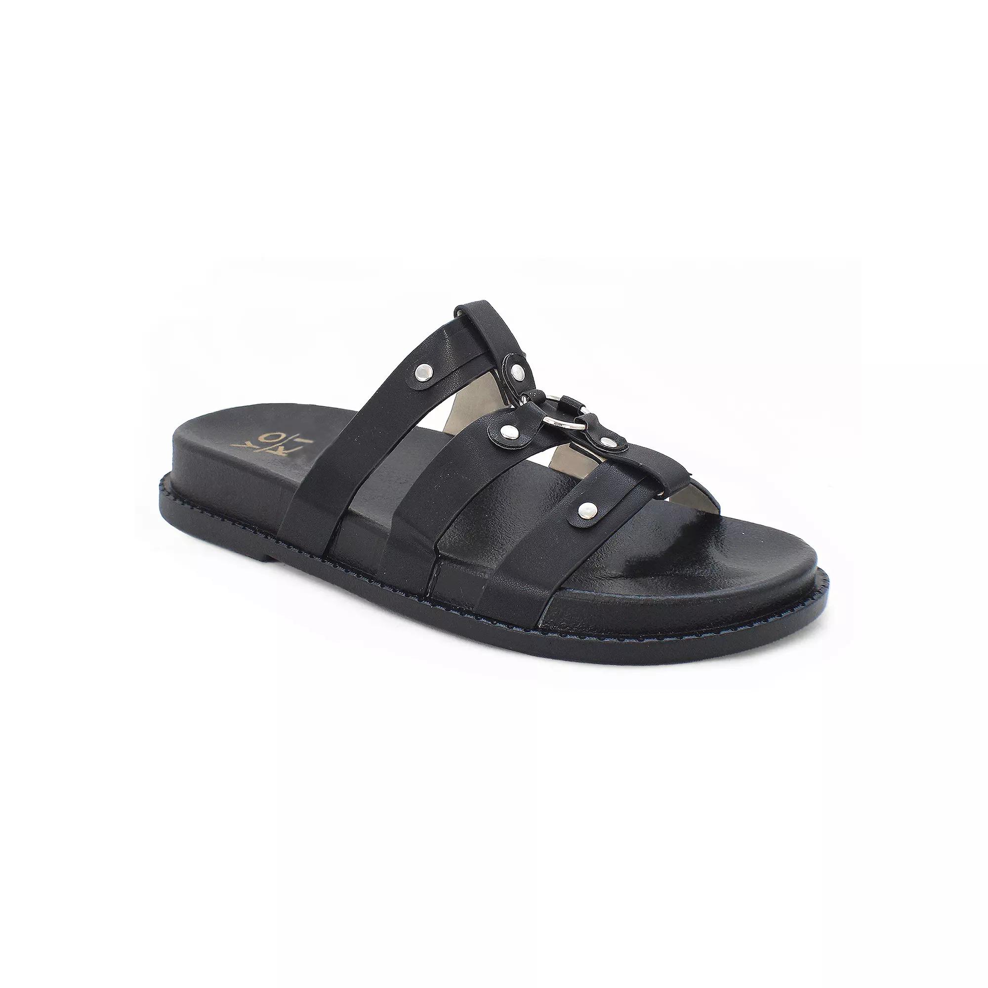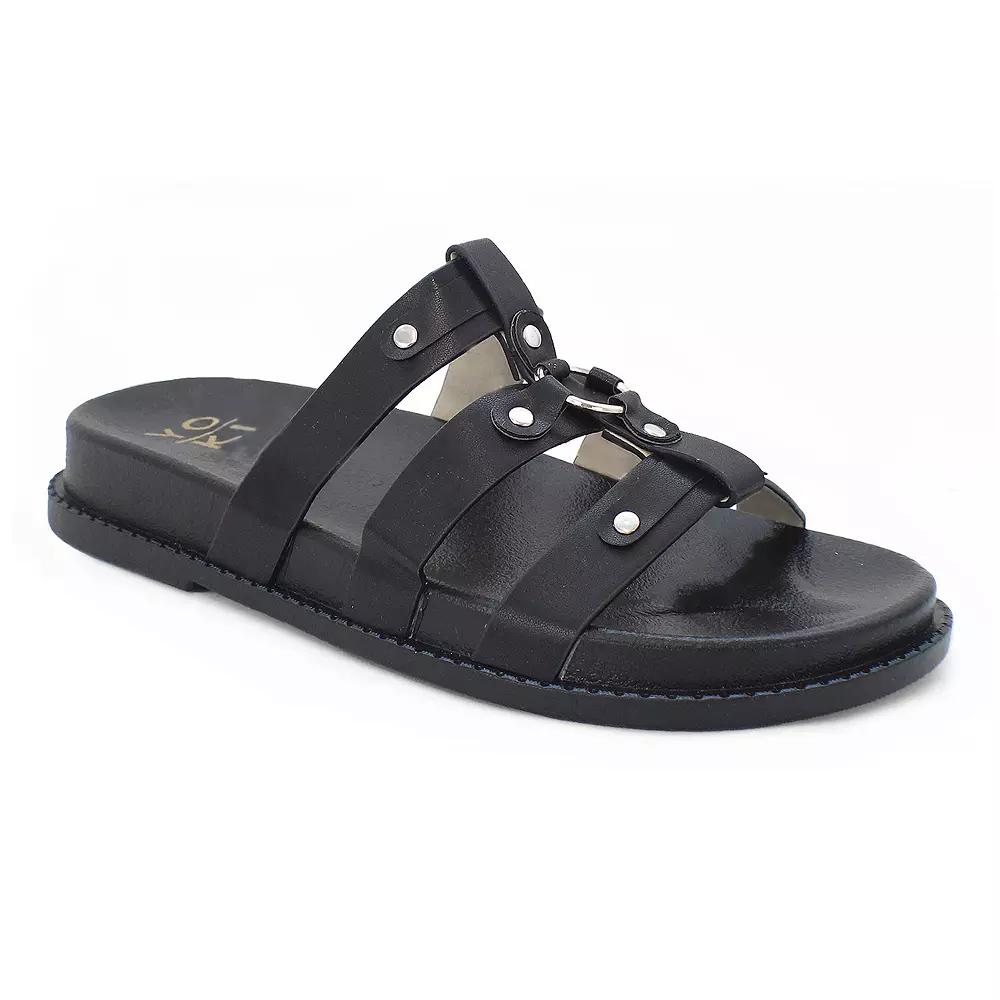 Combine fashion and practicality with these Yoki Nicole-17 women's fisherman footbed flat slide sandals. Click this FOOTWEAR GUIDE to find the perfect fit and more! - https://www.kohls.com/feature/shoesizeguide.jsp. FEATURES: Water-resistant design, Features small metal circle details, Relaxed, breathable fit. DETAILS: Synthetic upper, lining & midsole, Rubber outsole, Round open toe, Slip-on, Slip-resistant outsole, 1-in. heel, Spot clean, Imported. Size: 8.5 Med. Color: Black. Gender: female. Age Group: adult.