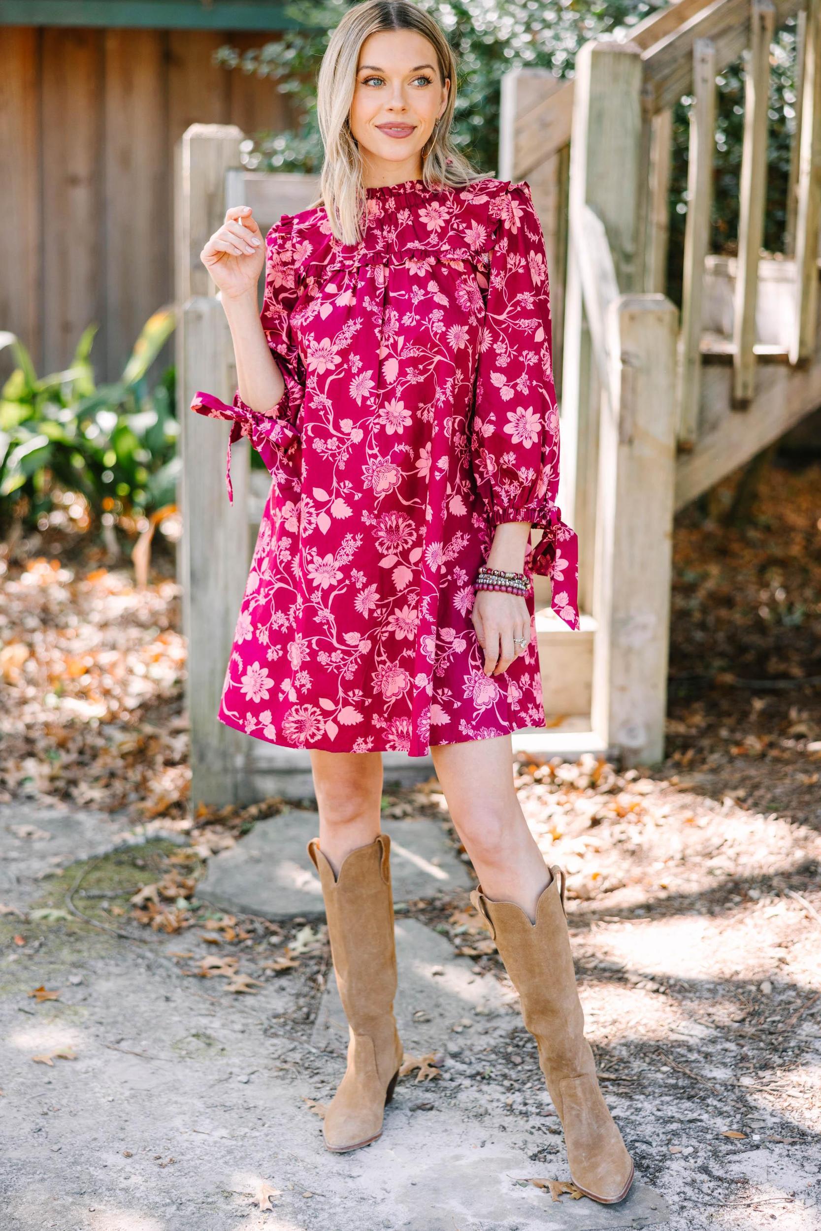 You are going to look amazing in this floral beauty! That print is perfectly feminine and we love the color combination. This conservative dress also has a high smocked neckline and 3/4 sleeves which make it a great choice for fall weddings or Sunday church. This dress features 3/4 sleeves, a high round smocked neckline, ruffled detailing, and a floral print. Material has no amount of stretch.Cam is weairng the small.