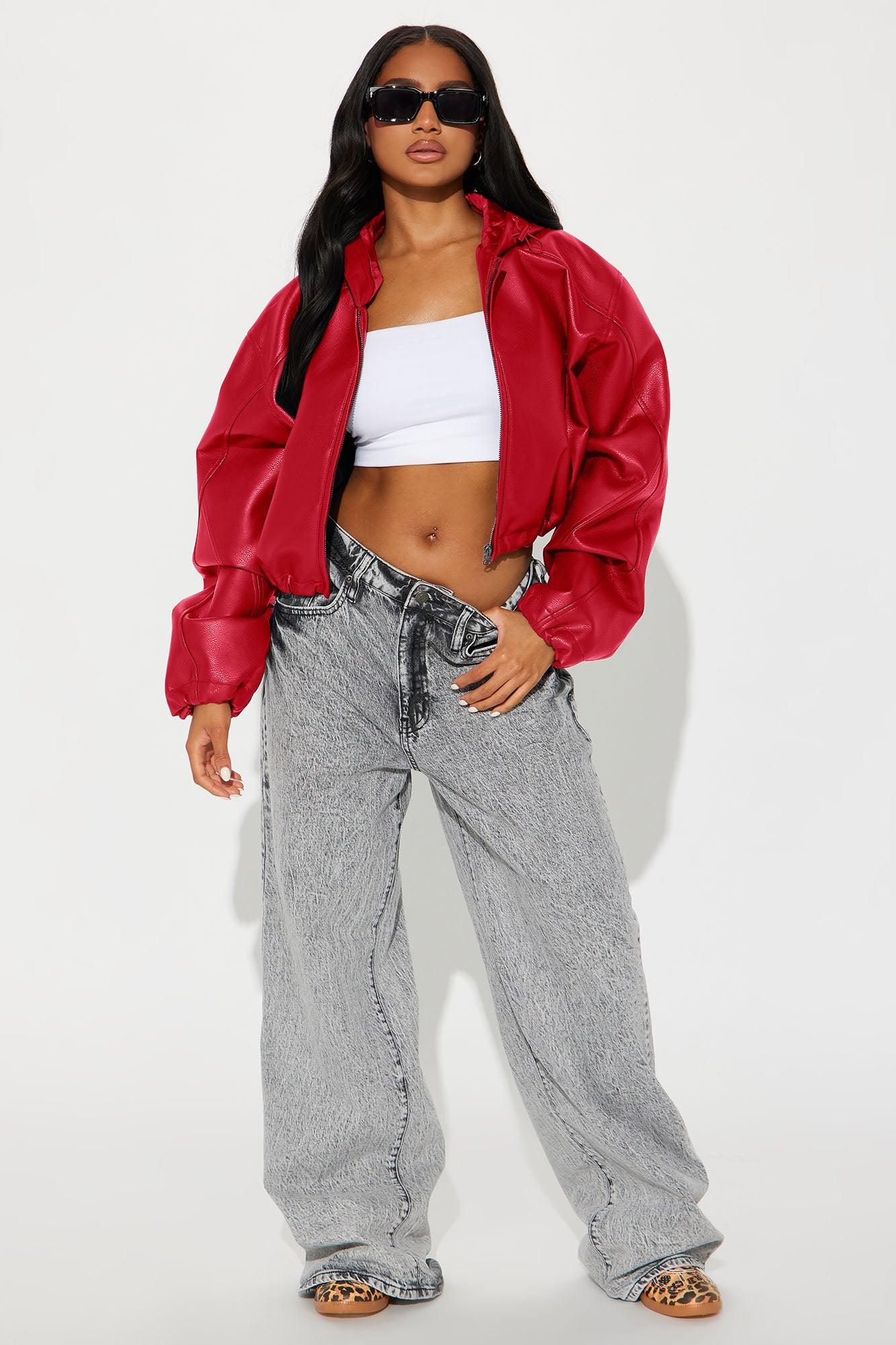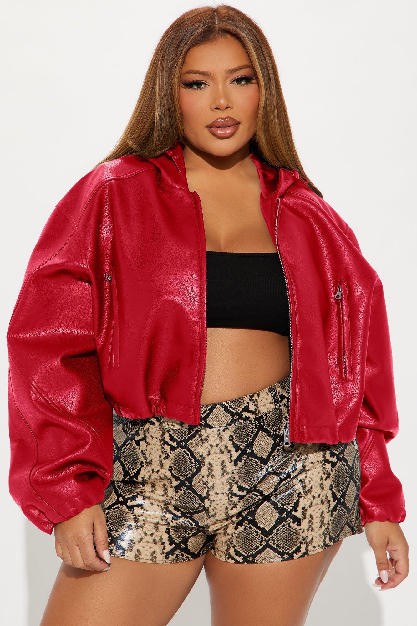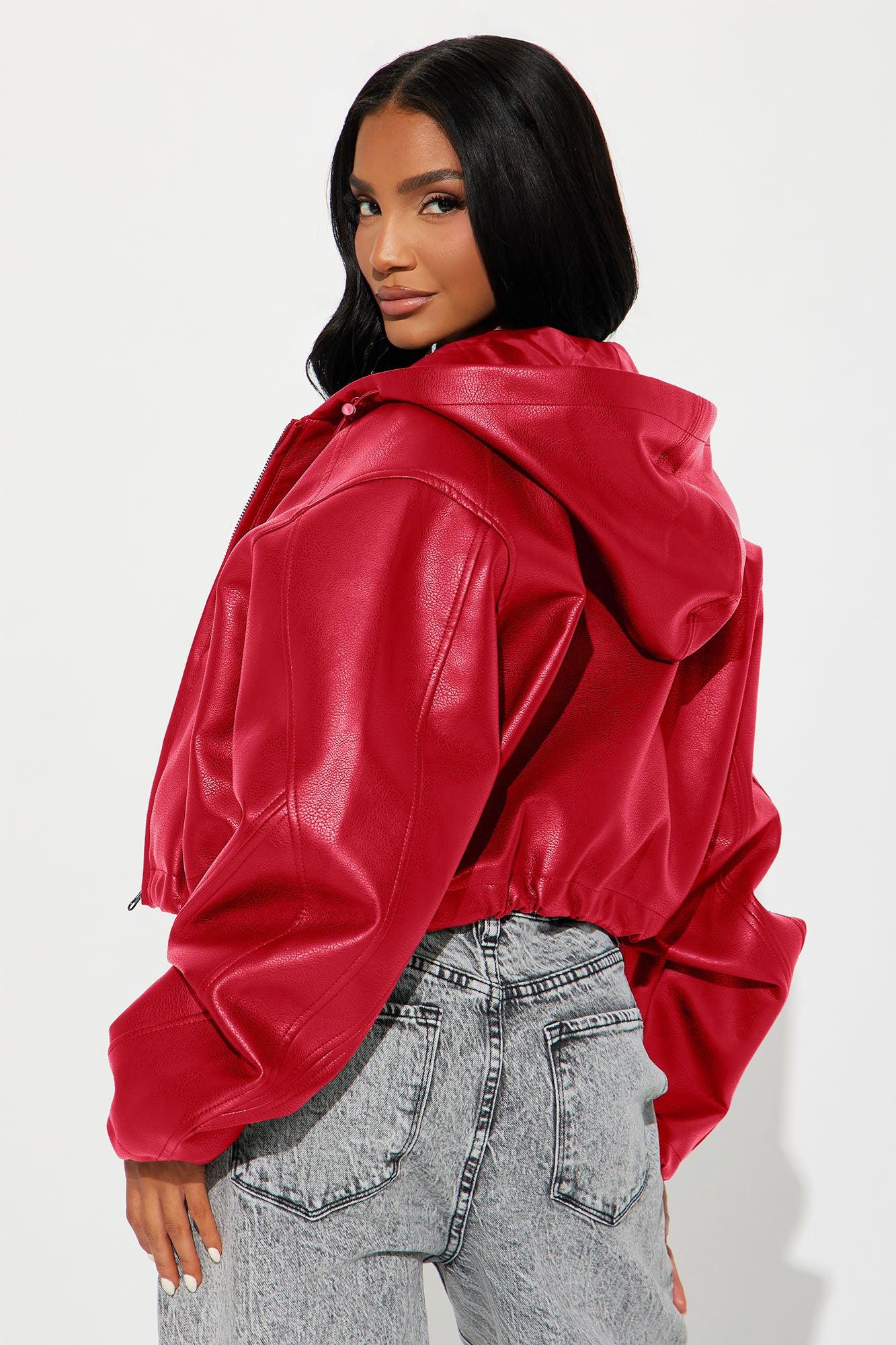Available In Mustard And Red. Faux Leather Jacket Hooded Full Zip Cropped Toggle Detail Lined Self: Coating: 100% Polyurethane Backing: 100% Polyester Lining: 100% Polyester Imported California Proposition 65WARNING: Cancer and Reproductive Harm - www.P65Warnings.ca.gov.