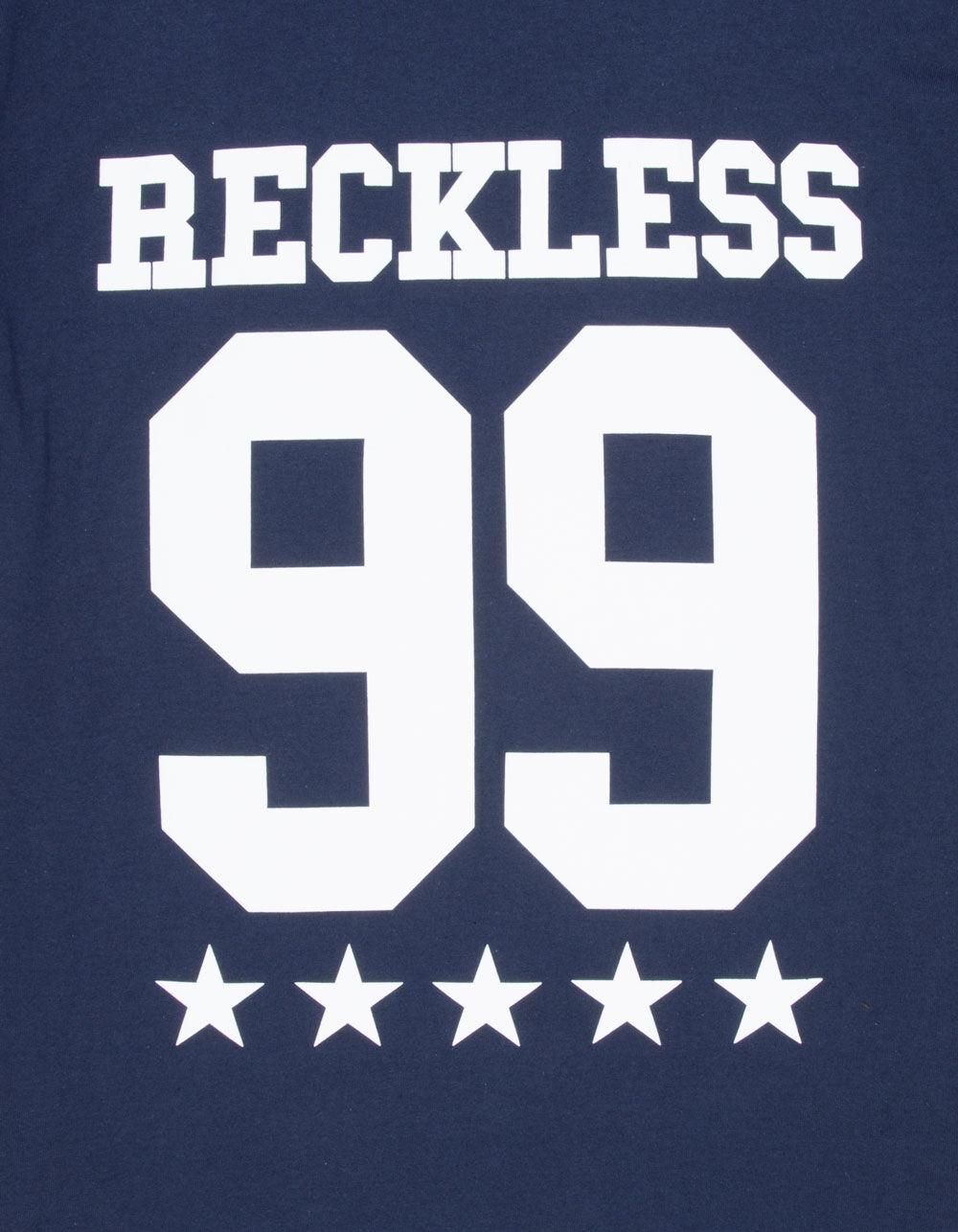 Young & Reckless 99 Reckless Tee. Large graphic screened on front. Crew neck. Short sleeve. 100% Cotton. Machine wash. Imported.