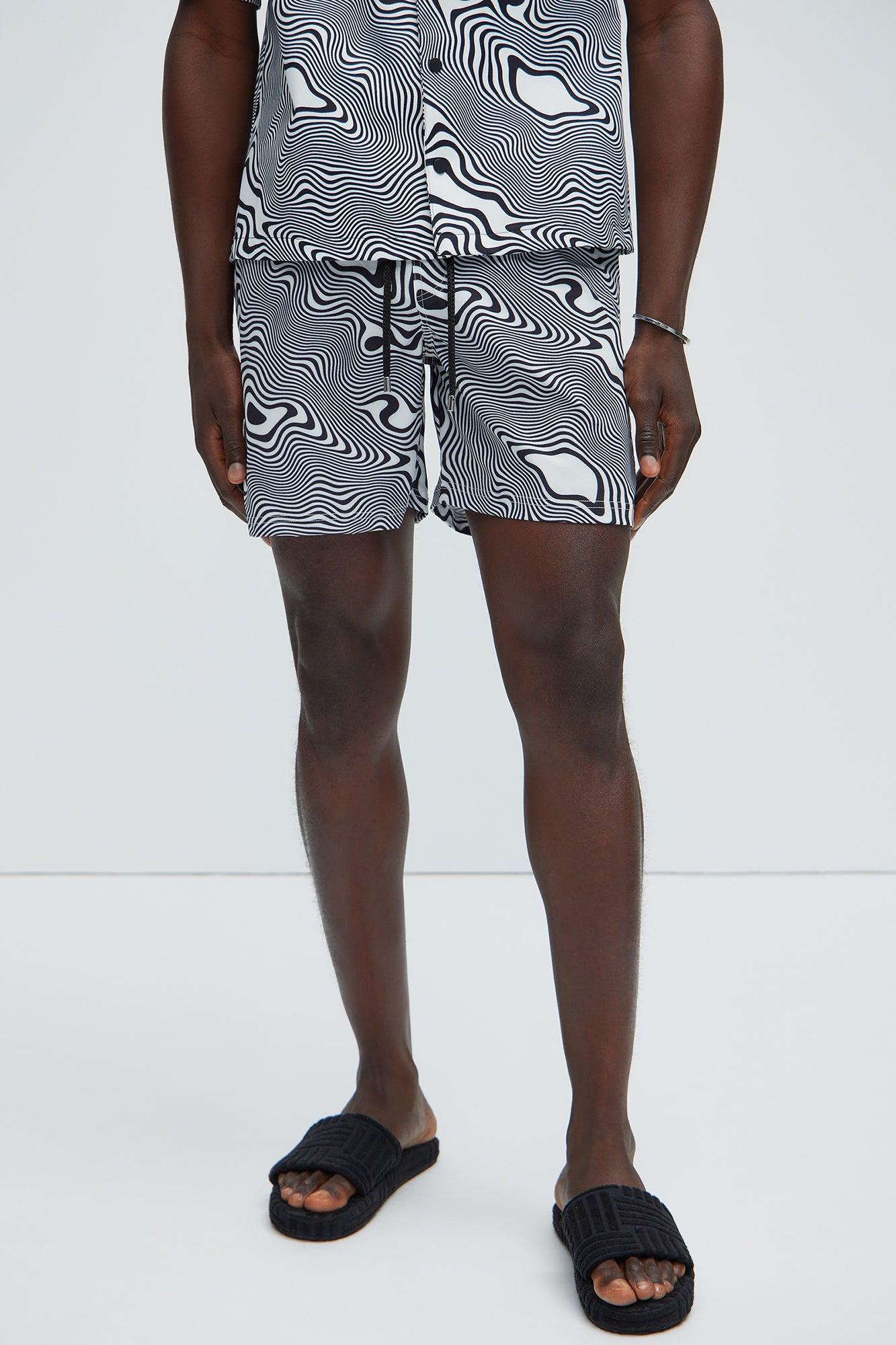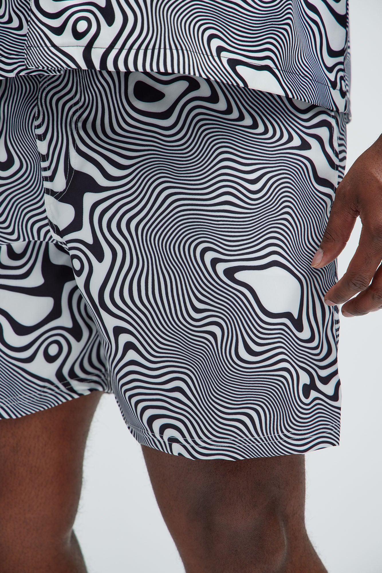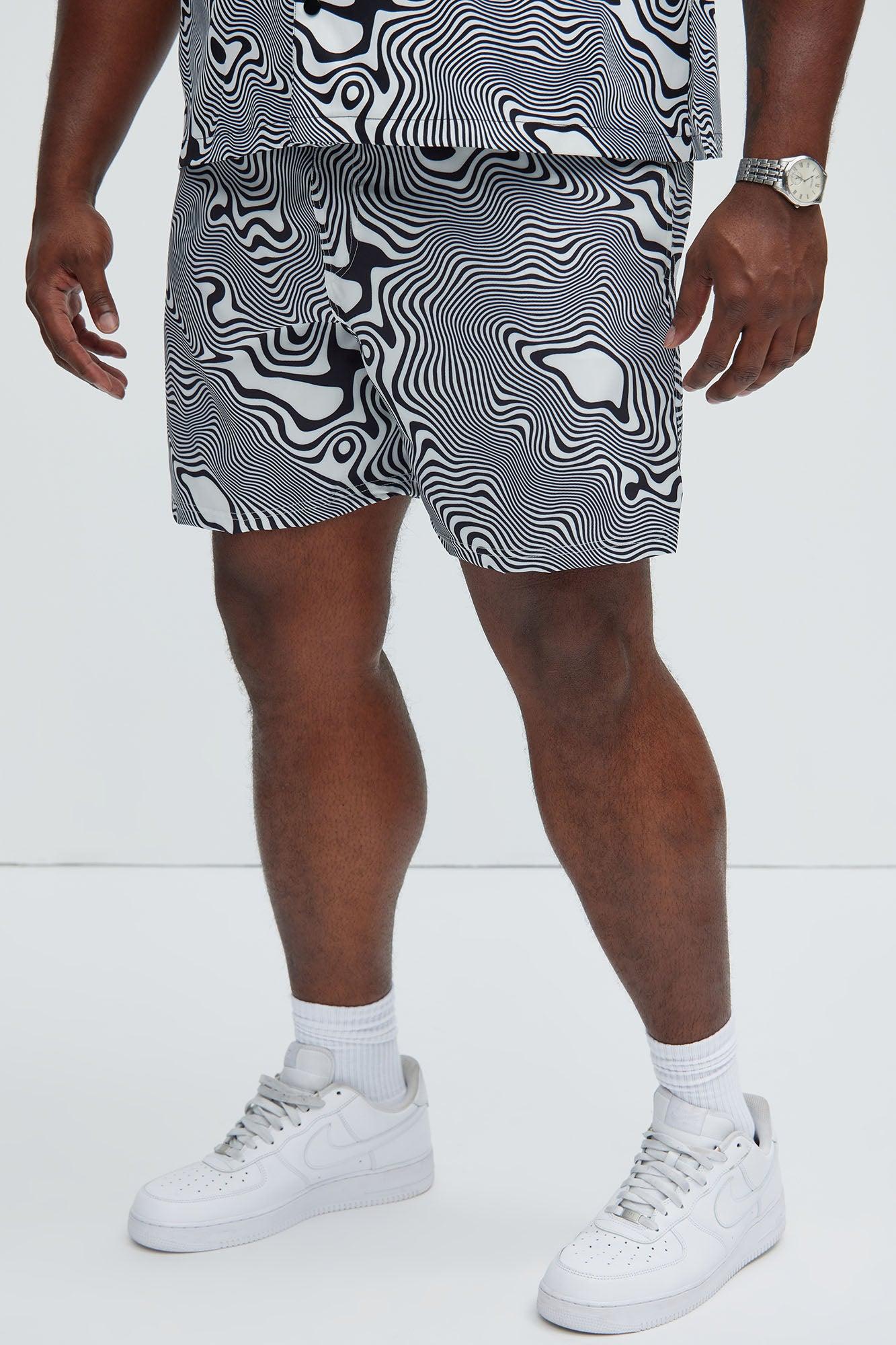 Available In Black/White. 6" Inseam Elastic Waist Drawstring Side Hand Pockets Pair With "Your Trippy Shirt" 92% Polyester, 8% Spandex Final Sale Disclaimer: Print Placement May Vary Imported California Proposition 65WARNING: Cancer and Reproductive Harm - www.P65Warnings.ca.gov.