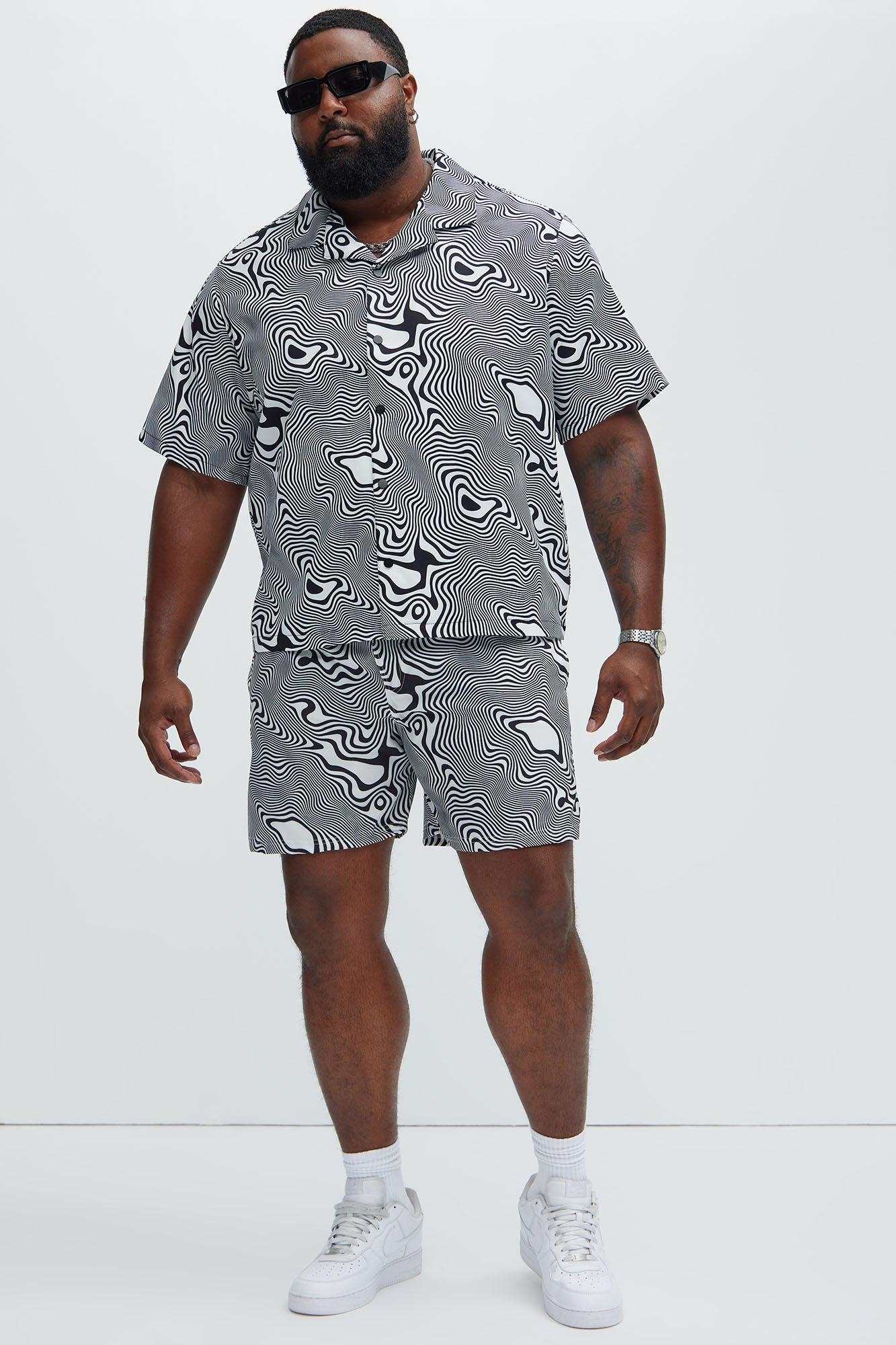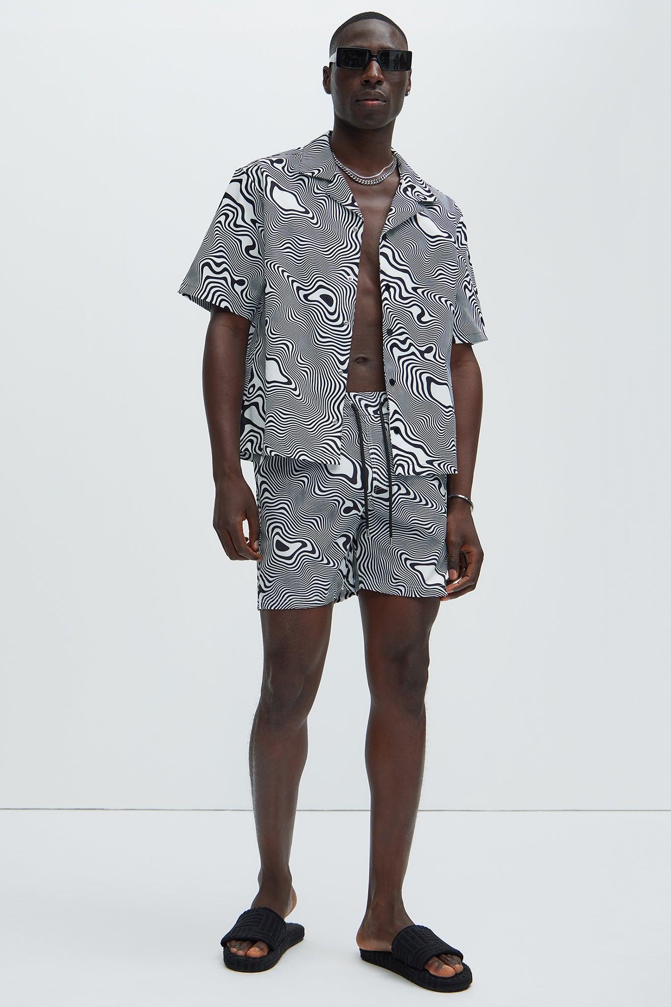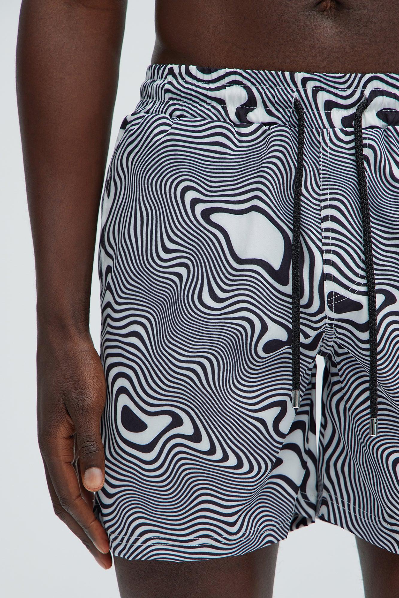 Available In Black/White. 6" Inseam Elastic Waist Drawstring Side Hand Pockets Pair With "Your Trippy Shirt" 92% Polyester, 8% Spandex Final Sale Disclaimer: Print Placement May Vary Imported California Proposition 65WARNING: Cancer and Reproductive Harm - www.P65Warnings.ca.gov.