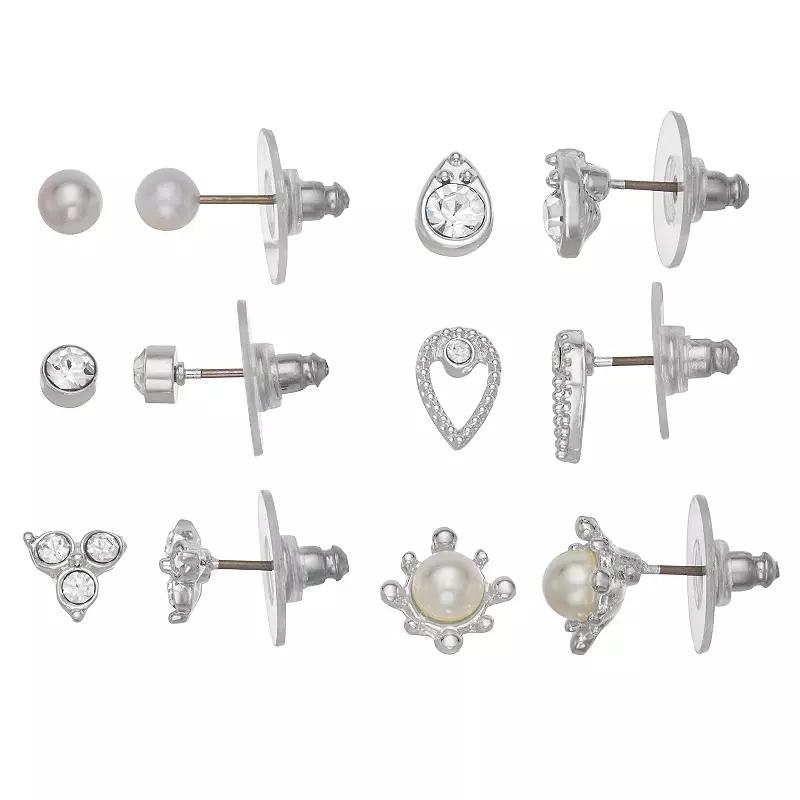 Accent your look with this You're Invited silver tone 6-pair stud earring set. Click on this JEWELRY & WATCHES GUIDE to learn about fit, styles, materials and more! Accent your look with this You're Invited silver tone 6-pair stud earring set. Click on this JEWELRY & WATCHES GUIDE to learn about fit, styles, materials and more! FEATURES Includes 6 pairs of earrings Length: 5 mm, 4.5 mm, 7.5 mm, 8.5 mm, 8.5 mm, 9.7 mm Backings: post Nickel safe Metal: alloy Material: acrylic Plating: silver tone Finish: polished Not appropriate for children 14 years old and younger. Size: One Size. Color: White. Gender: female. Age Group: adult.