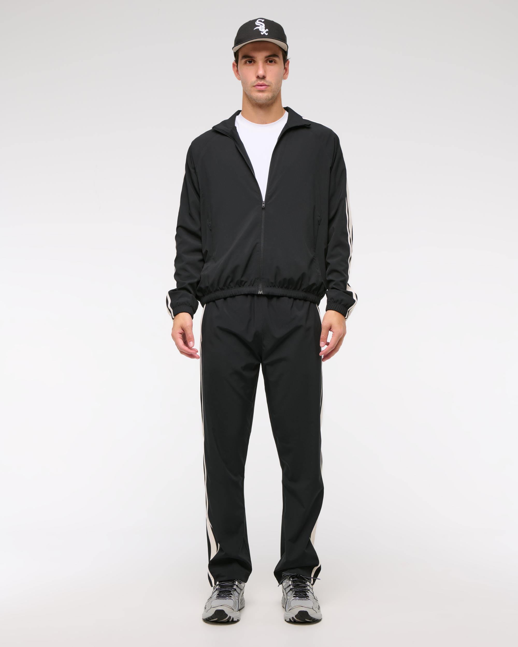 Our new track pants in our active motionTEK fabric. Designed to move with you, our motionTEK fabric is lightweight, stretchy and breathable. Features a relaxed-fit silhouette, an elasticated waistband with interior drawcords, retro-inspired striped details and side pockets with hidden zipper pocket for extra security during every workout.