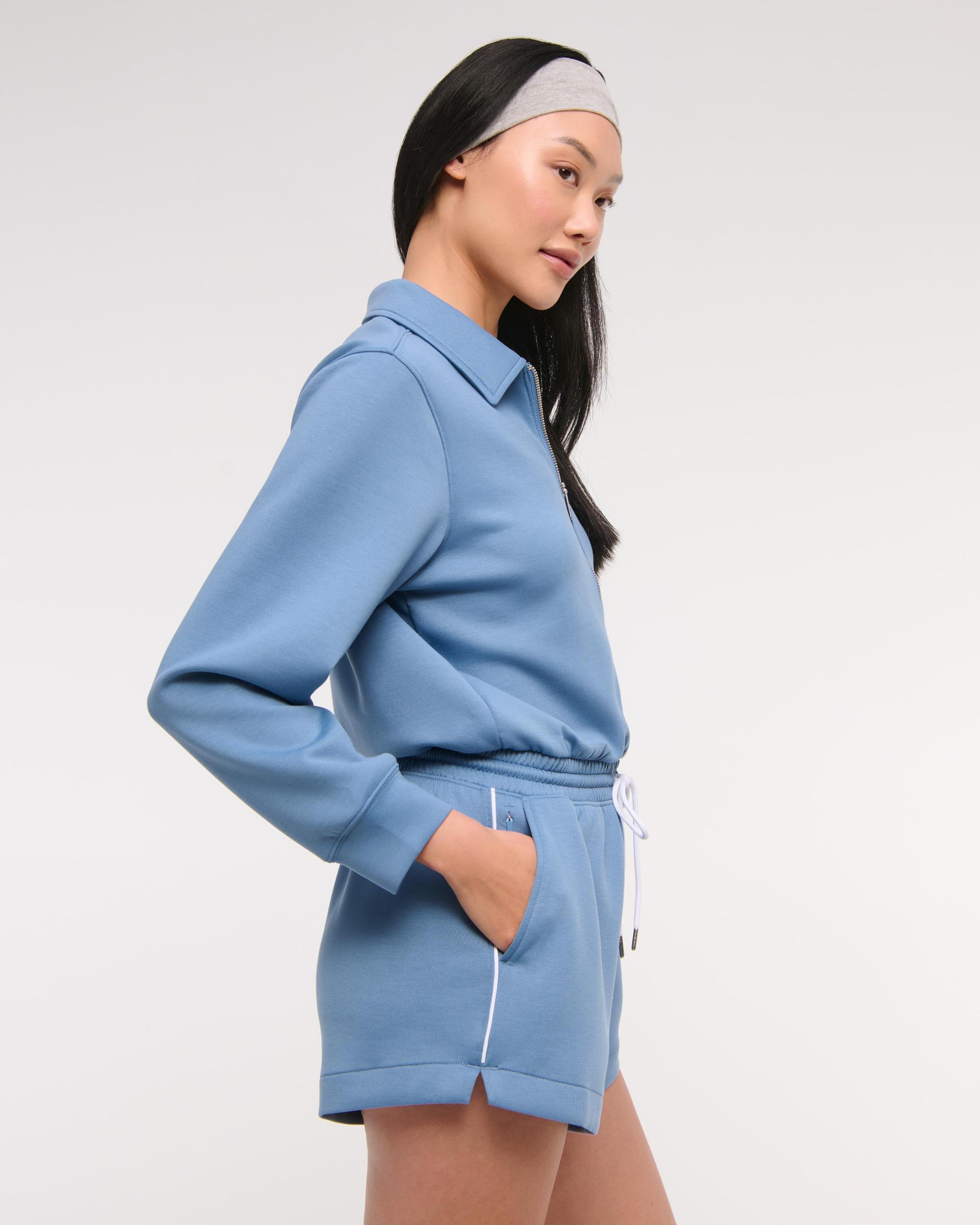 Easy-fitting long sleeve romper in our super soft neoKNIT active fabric. Designed with a smooth interior, our neoKNIT fabric is made from layerable sweat-wicking neoprene. Features a classic polo collar, half-zip detail, an elasticated drawstring waistband and pockets.