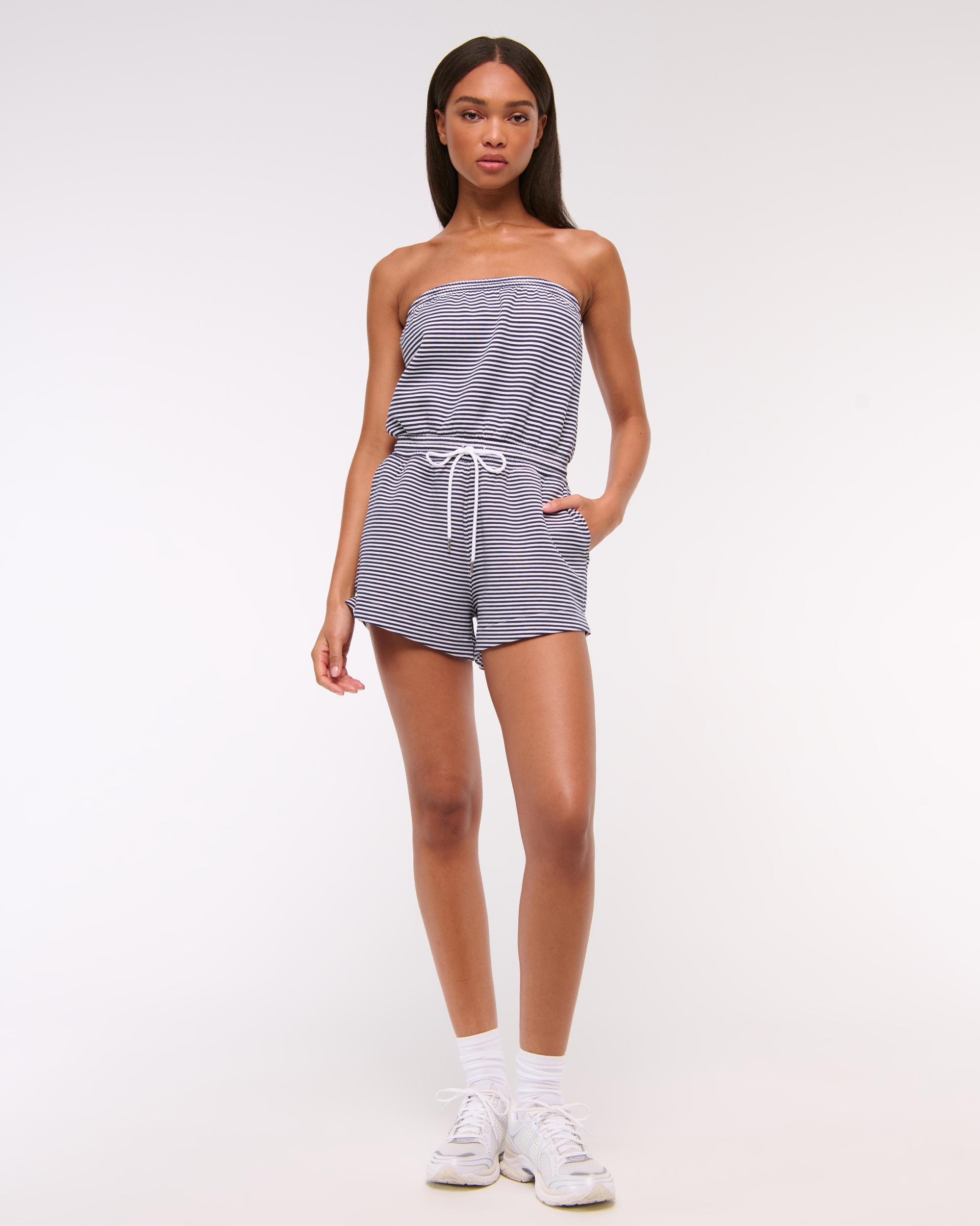 Easy-fitting strapless romper in our super soft neoKNIT active fabric. Designed with a smooth interior, our neoKNIT fabric is made from layerable sweat-wicking neoprene. Features a bandeau neckline, an elasticated drawstring waistband and pockets.