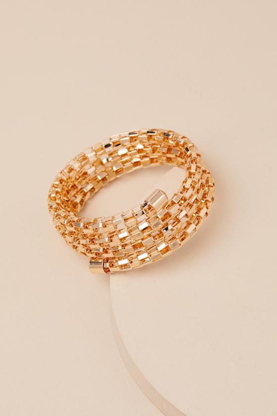 This gold-toned bracelet offers an instant one-and-done look, so you can spend less time accessorizing and more time being admired. The chic coiled silhouette features a chain-link-inspired design that wraps around the arm, creating a look that effortlessly impresses.