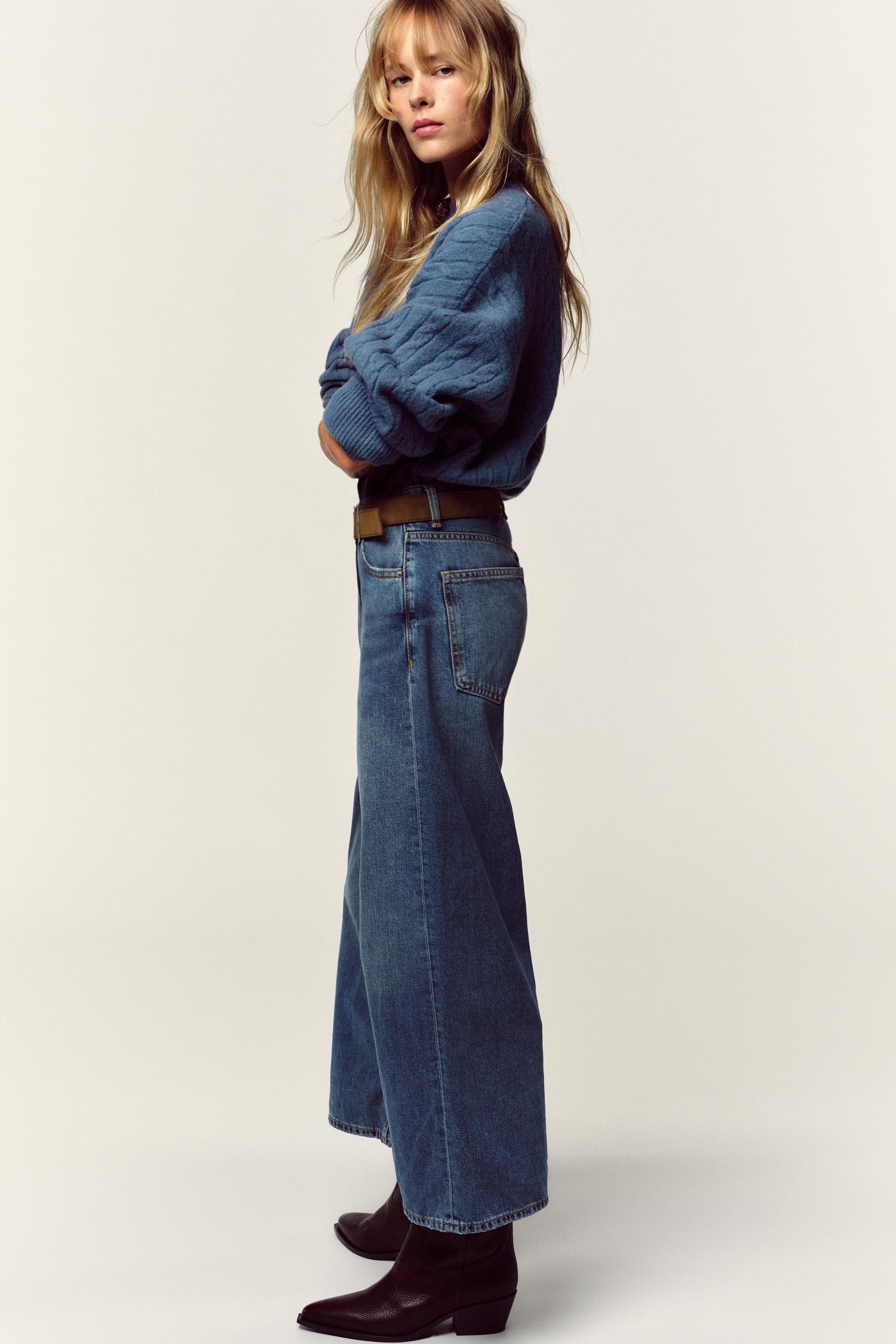 HIGH WAIST - WIDE LEG - CROPPED - BELT High-waisted jeans with belt and five pockets. Wide, cropped leg. Front zip and button closure.